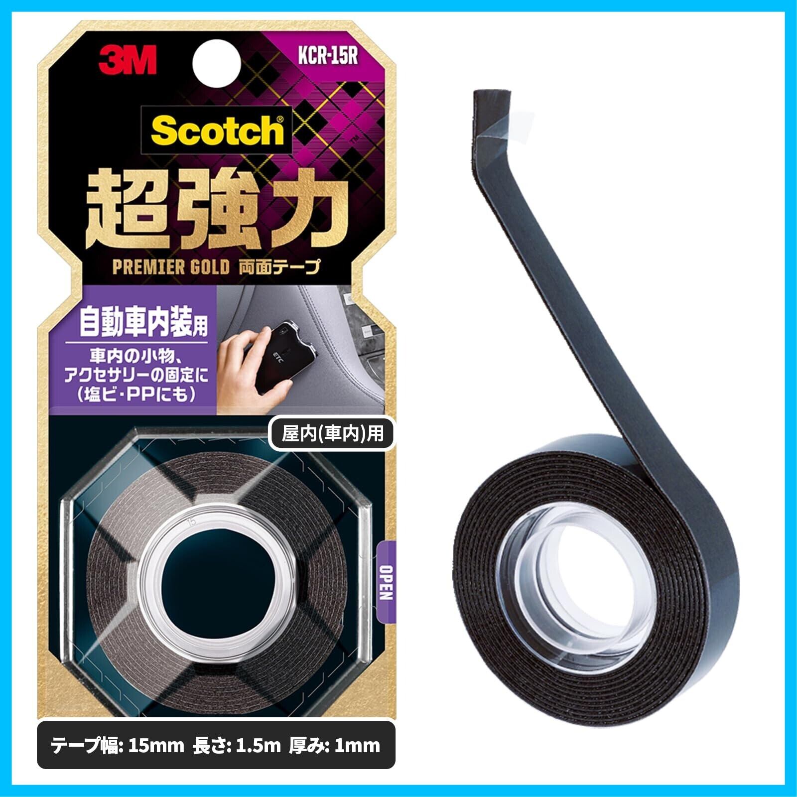3M 両面テープ 超強力 自動車 内装用 幅15mm 長さ1.5m スコッチ KCR-15R 小巻 プレミアゴールド