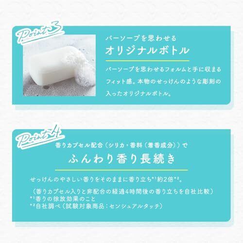 バーソープを思わせるオリジナルボトルバーソープを思わせるフォルムと手に収まるフィット感があります。