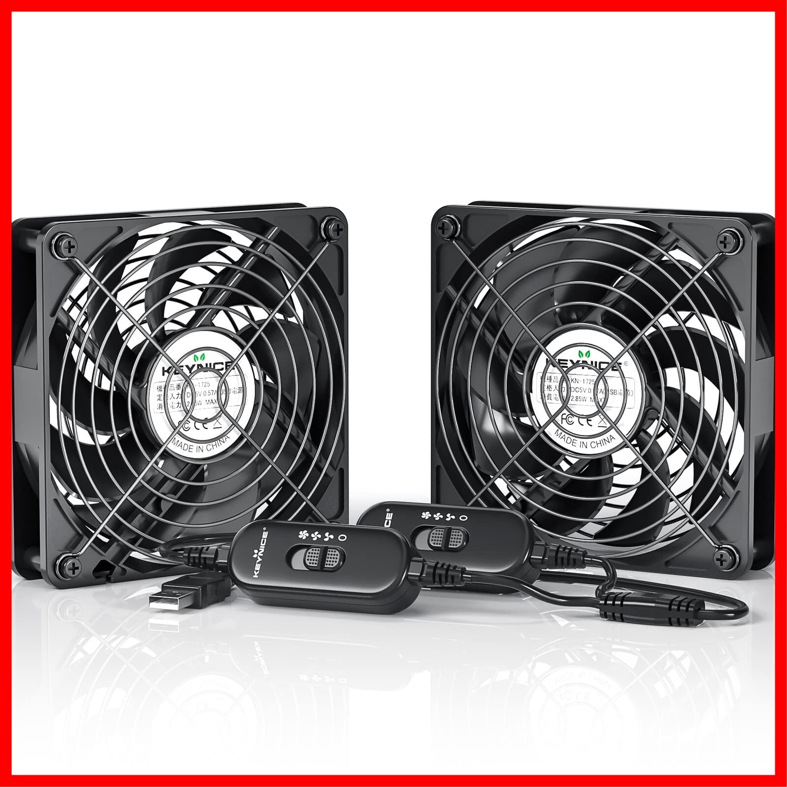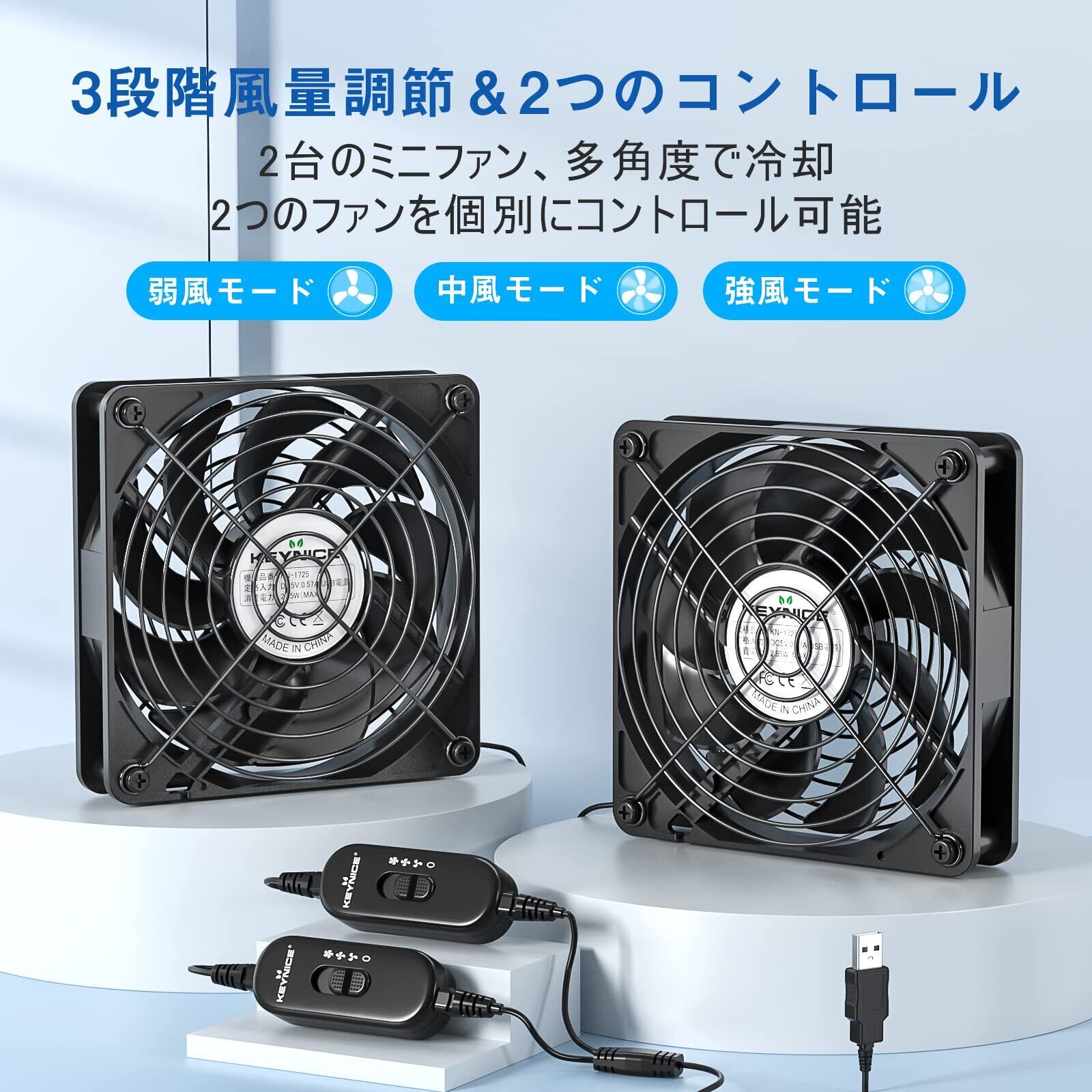 Keynice usbファン 冷却ファン 静音 強力 PC パソコン冷却 送風機 扇風機 ミニファン 小型 冷却クーラー 2000RPM 9枚羽根 換気扇 ルーター 水槽 PS4冷却 12cm 2個1組 2つのコントロールスイッチ個別制御