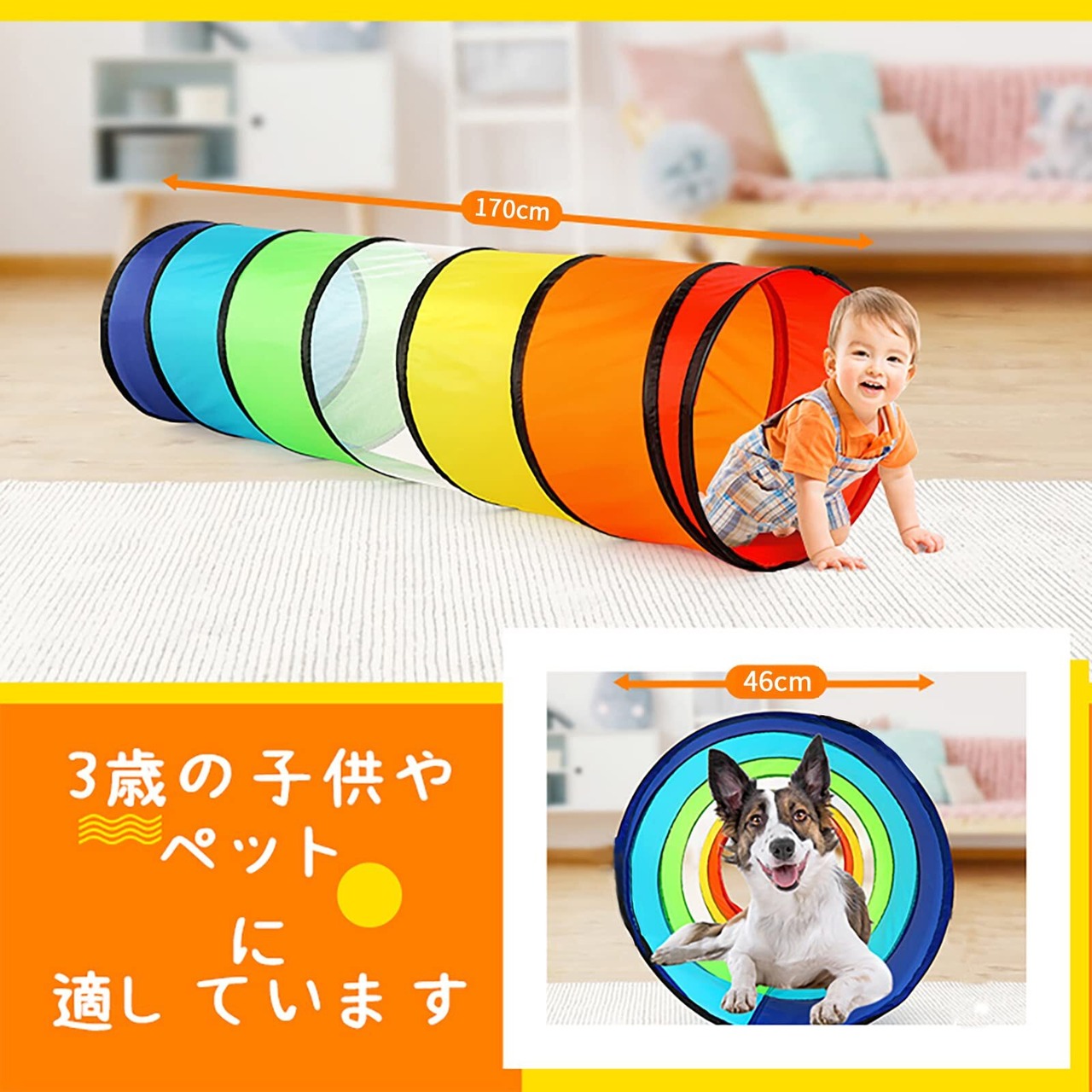 【かわいい爬行トンネル】お子様とペットは室内トンネルの中で自由に這って行たり、遊んだりすることができます。腕と足の筋肉と運動スキルを鍛えられます。お外に出られない日も、家遊びがこれひとつで楽しくなります。様々なシーンでお使いください。こどもトンネルもペット、猫、犬などにも適用されます。