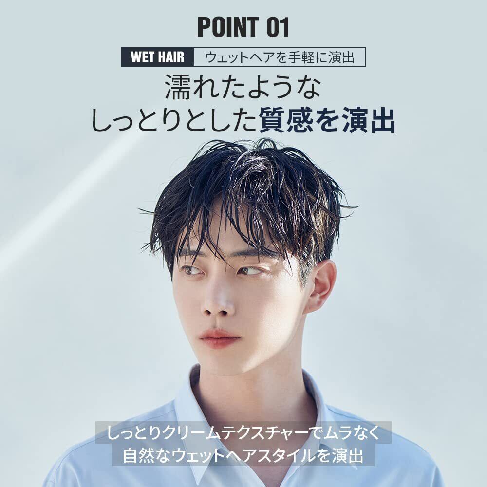 みずみずしいテクスチャでパサパサと固まらないウェットヘアを演出可能