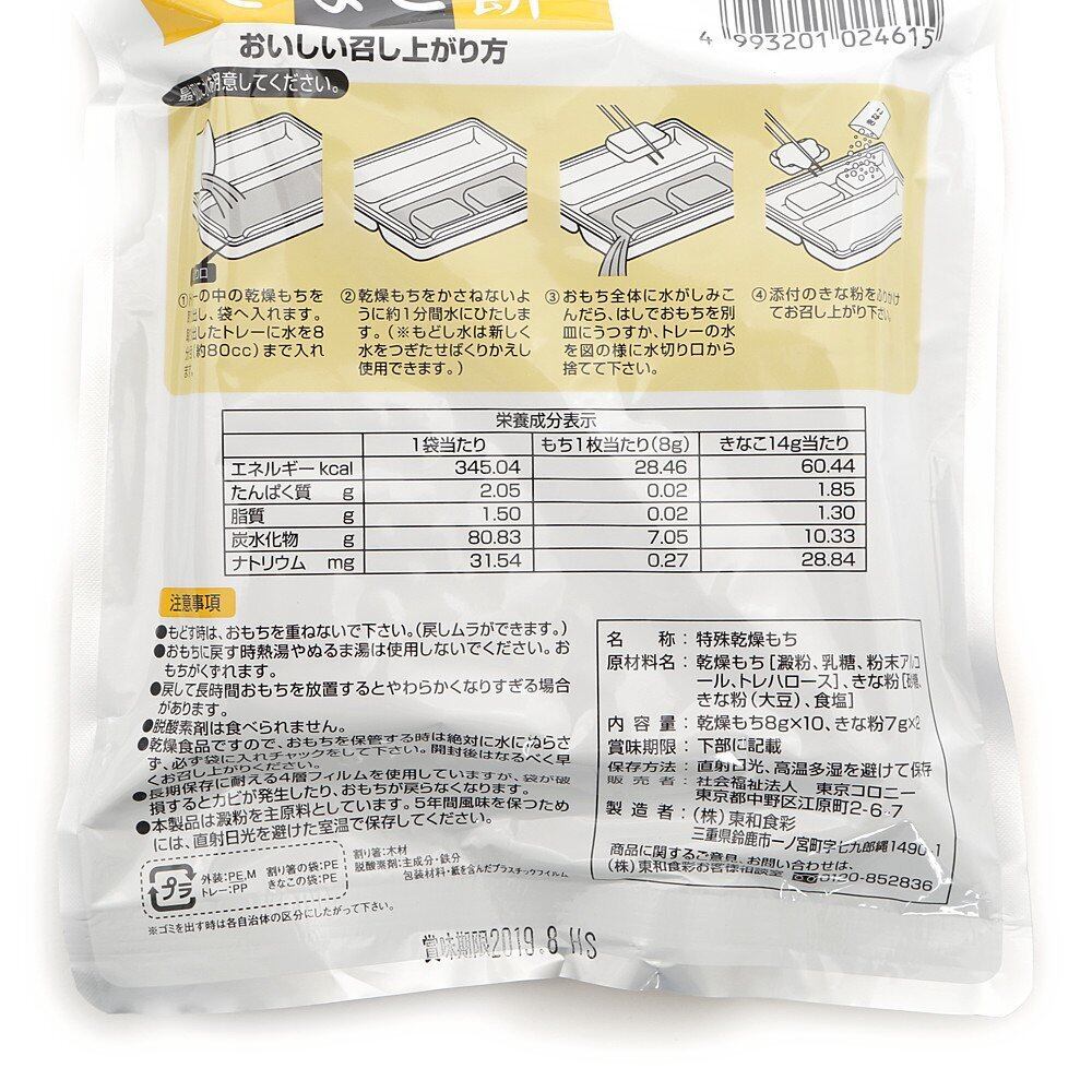 東京コロニー 長期保存食【賞味期限5年】 即席乾燥餅《水に3分浸すと食べられる》 きなこ餅 HC2461 1個 (x 1)