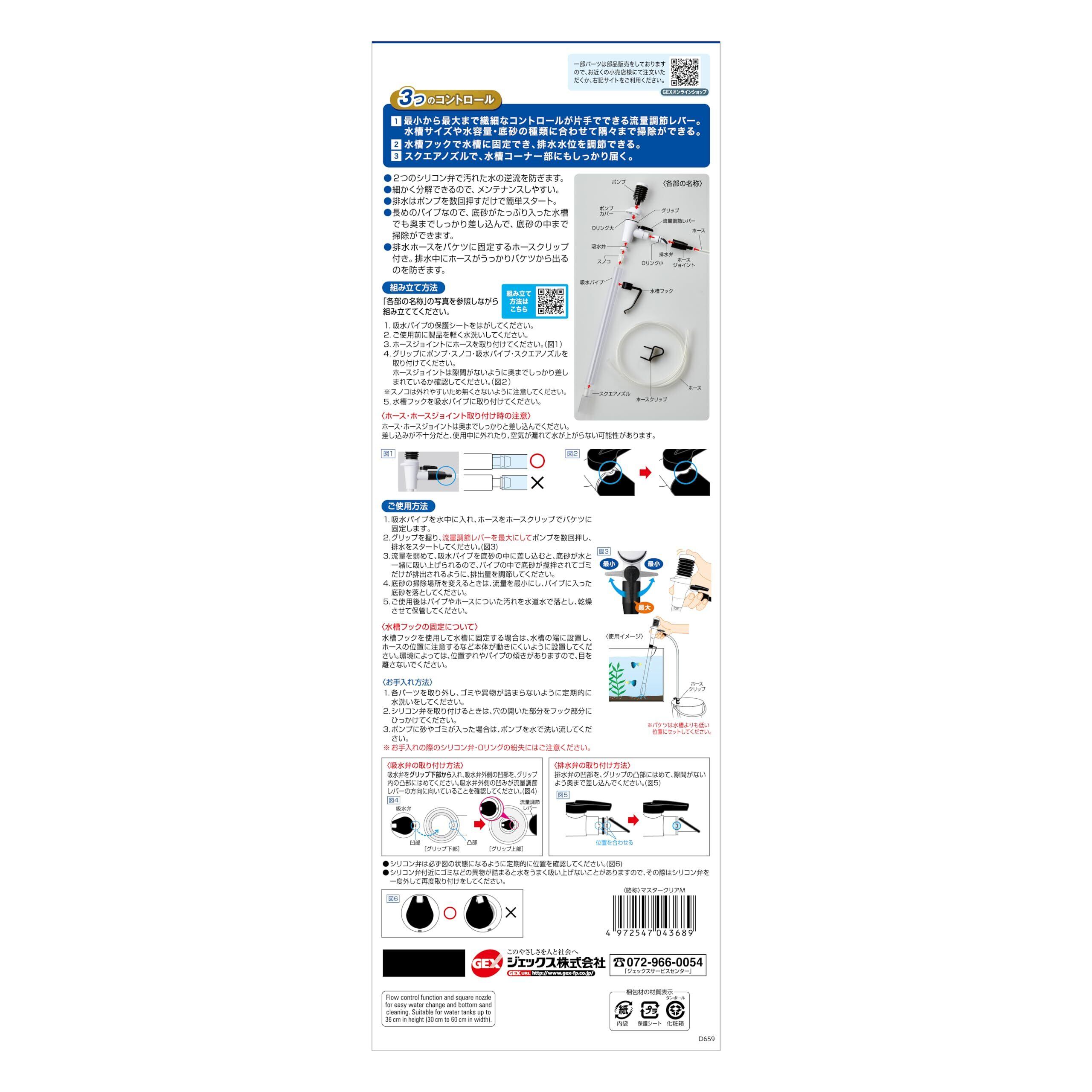 GEX おそうじラクラク マスタークリアM コントロール自在 水換え&底砂掃除 3つのコントロール 水槽の高さ36cmまで 幅30cm~幅60cm水槽 ポンプ 流量調節 排水 クリーナー メンテナンス