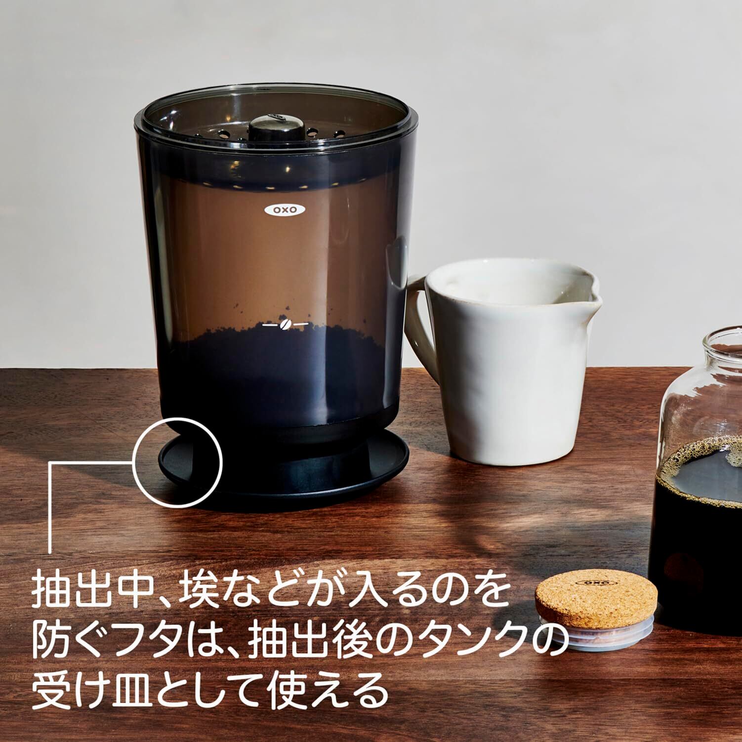 なめらかな味わいの濃縮コーヒーを簡単に抽出。水出しすることで酸味と苦みを抑えたまろやかな味わいのコーヒーを淹れられる