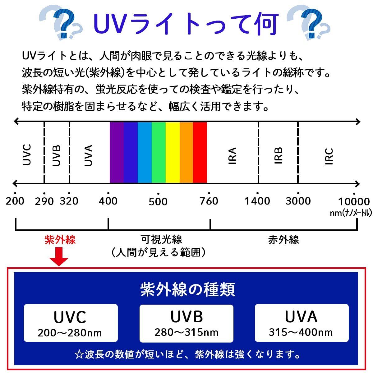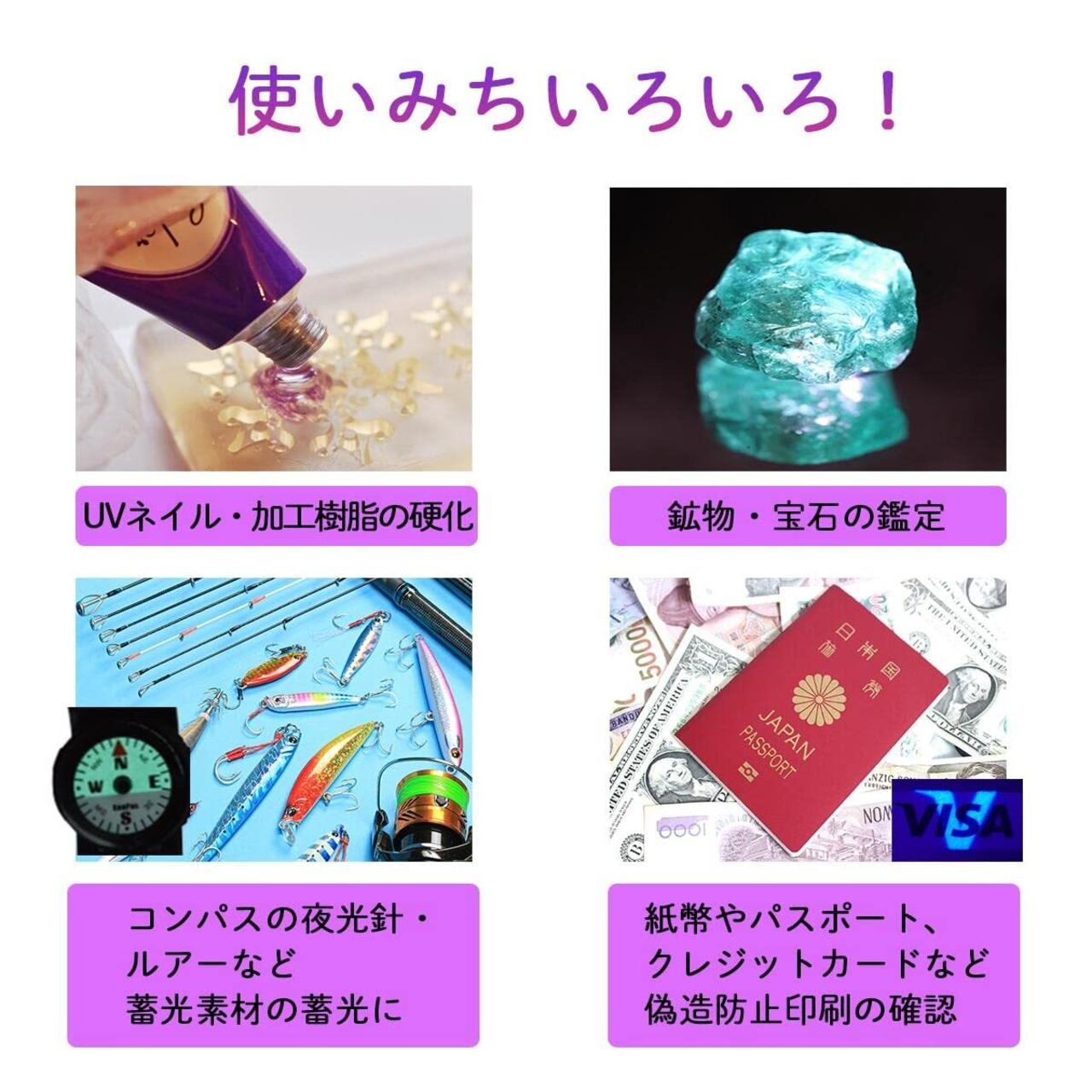 ●アニサキスの検出、チェック、●UV硬化型樹脂・ジェルネイルの硬化