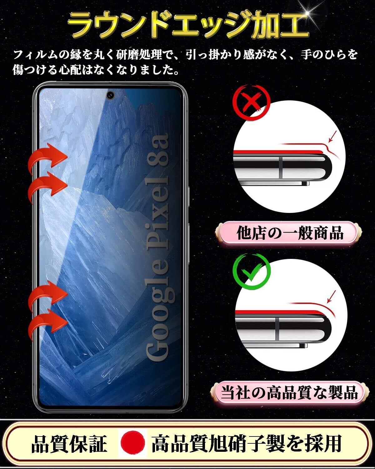 対応 Google Pixel 8a ガラスフィルム 覗き見防止 グーグルピクセル8a 全面保護フィルム のぞき見防止【1枚入り】指紋認証なし 硬度9H 指紋防止 貼り付け簡単 自動吸着 気泡防止 キズ防止 撥水撥油 Pixel 8a 強化ガラス 保護フィルム