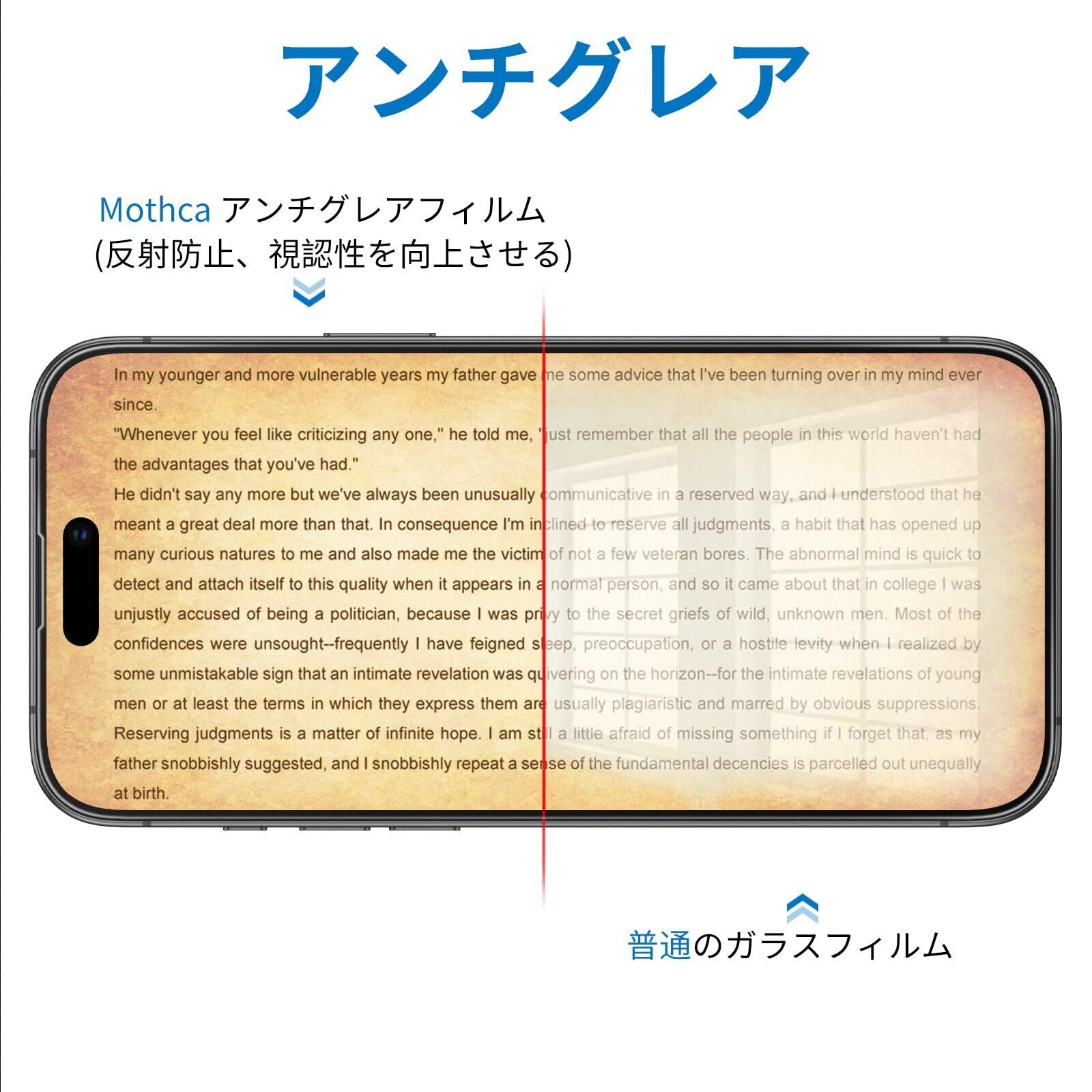 Mothca アンチグレア iPhone 16 Pro用 全面保護 ガラスフィルム 反射防止 指紋防止 保護フィルム 黒縁あり 強化ガラス フィルム サラサラ 高感度タッチ ゲームフィルム ゲガイド枠付き 液晶 日本旭硝子製素材 アイフォン16プロ(6.3インチ)対応