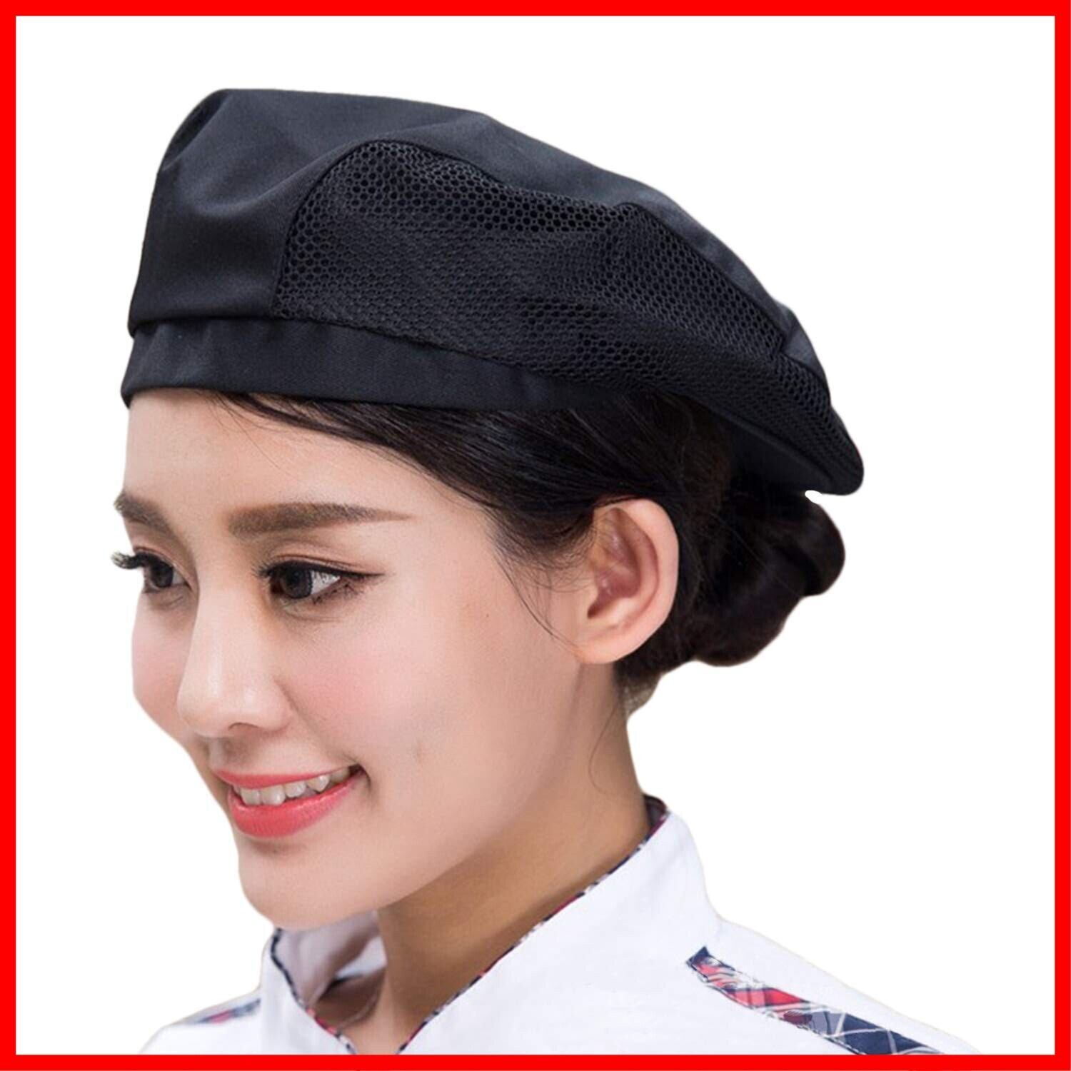 ベレー帽 コック帽子 厨房 調理 白衣 かっこいい ユニセックス 無地 メッシュ付き 通気性 シェフ レストラン カフェ 料理屋 ウェイター 料理師 キッチン用品 男女兼用 ブラック 3〜5労働日に配送済み