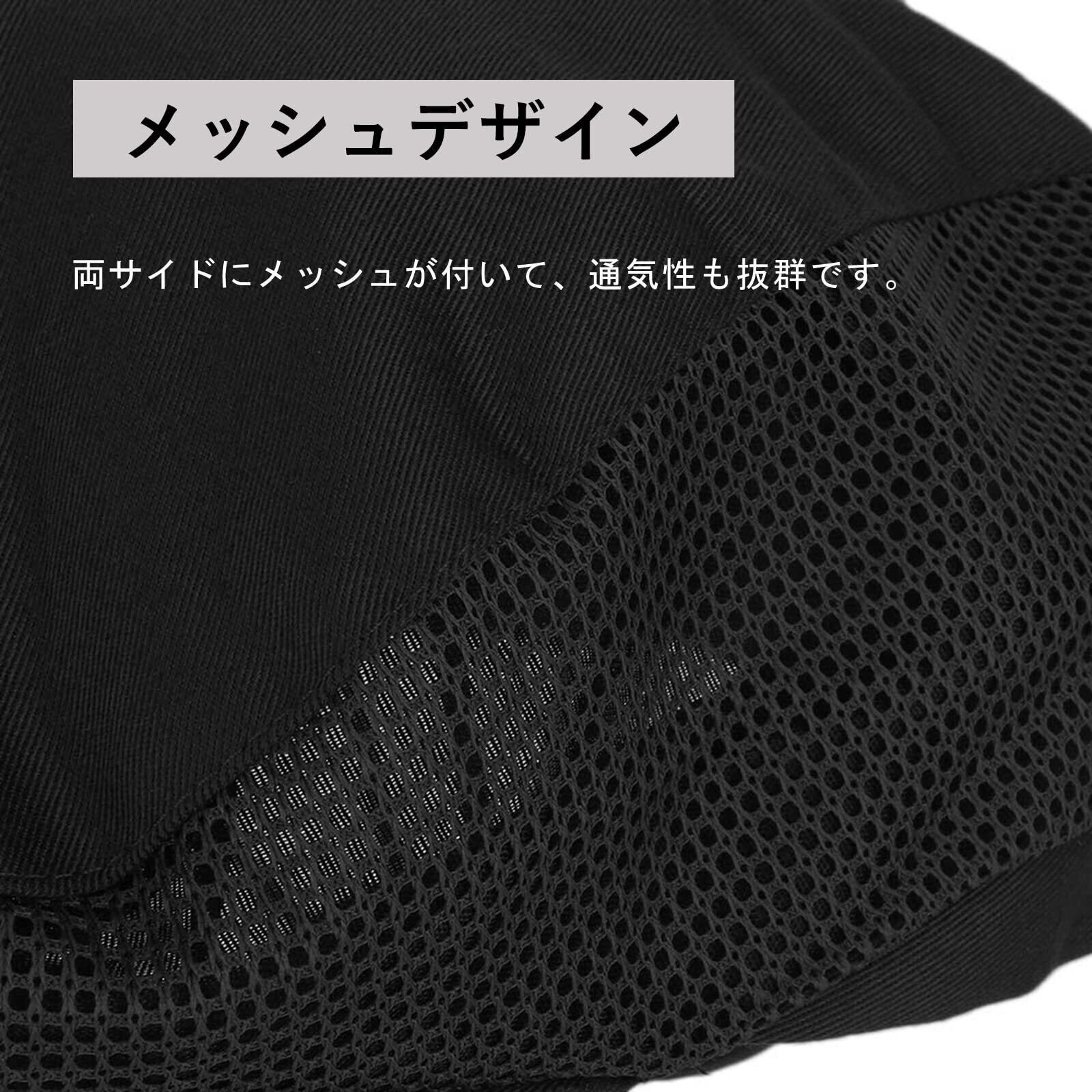 素材:綿素材ですので、柔らかで頭に優しくフィットします。両サイドにメッシュが付いて、通気性も抜群です。