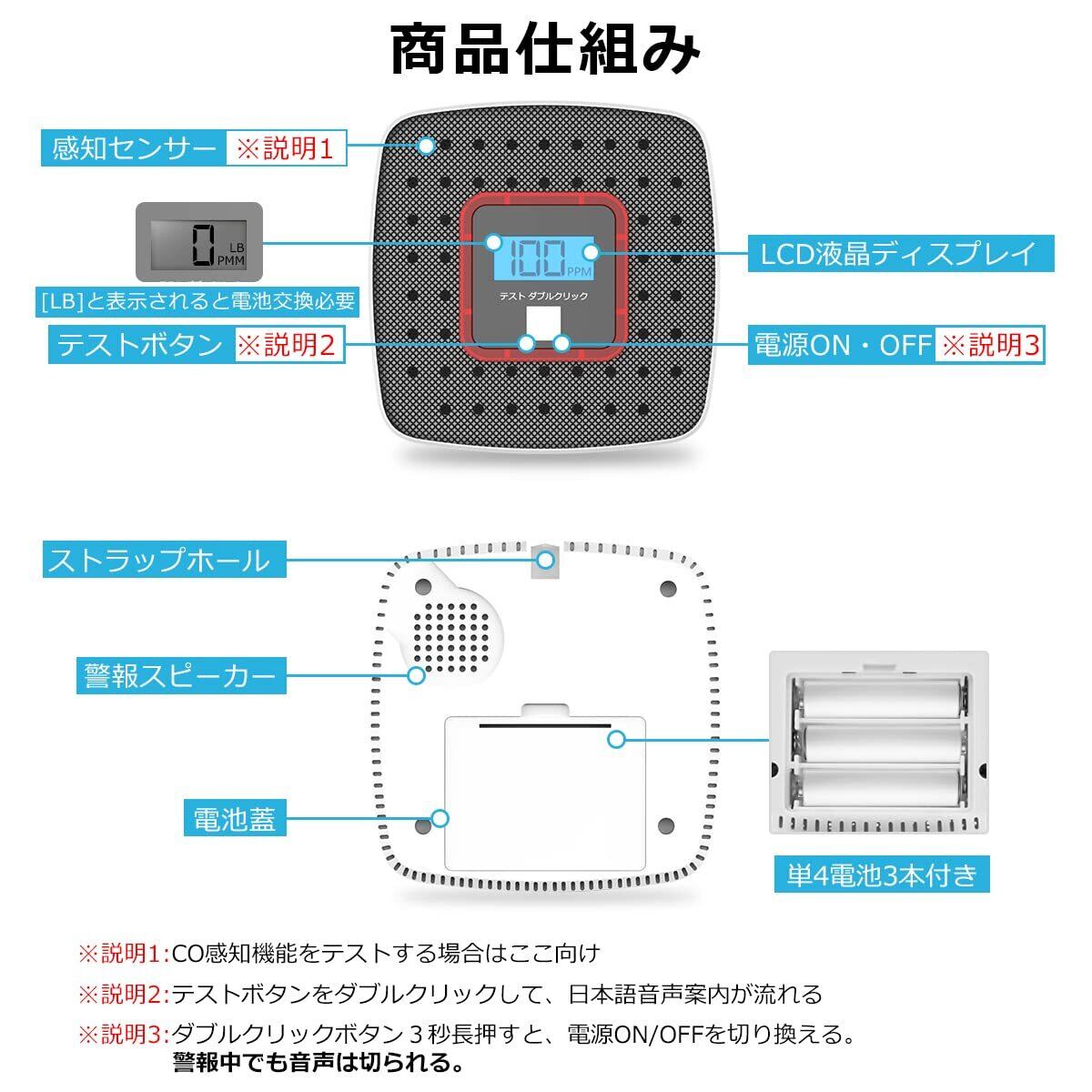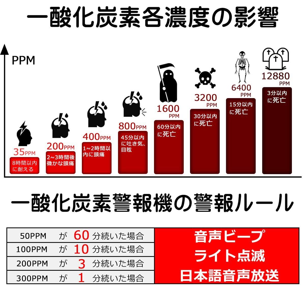 【品質保証】品質保証商品は12ヶ月品質保証しますので、万が一物流などの原因による音声がでなく、ストーブの部屋で使用しても数値が上がらないことがあれば、こちらは迅速に、技術サポートや商品の取り替えなどのサービスをご提供いたします。※このアラームは、一酸化炭素のみを感知します。その他の有毒ガスに関しては感知することができません。