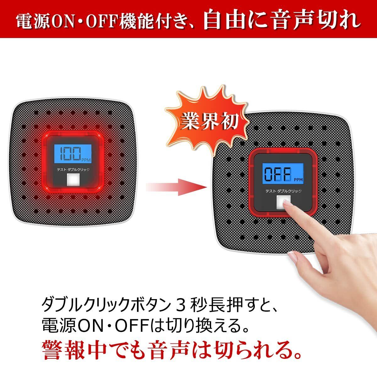 【最新モデル発売】 お客様の声に応じて、手動ON・OFF機能追加して警報中でも音声が切られます。アウトドア使用のため、収納袋、ストラップ、ホルダーなどの部品もついております。使用シーン:キャンプなどのアウトドアで、石油、灯油、ガス、薪、炭などを燃焼させる機器(石油ストーブ、薪ストーブ、ガスストーブ、炭火グリル等)が設置されている場所での一酸化炭素警報です。※本製品を室内用の一酸化炭素警報機ではございません。