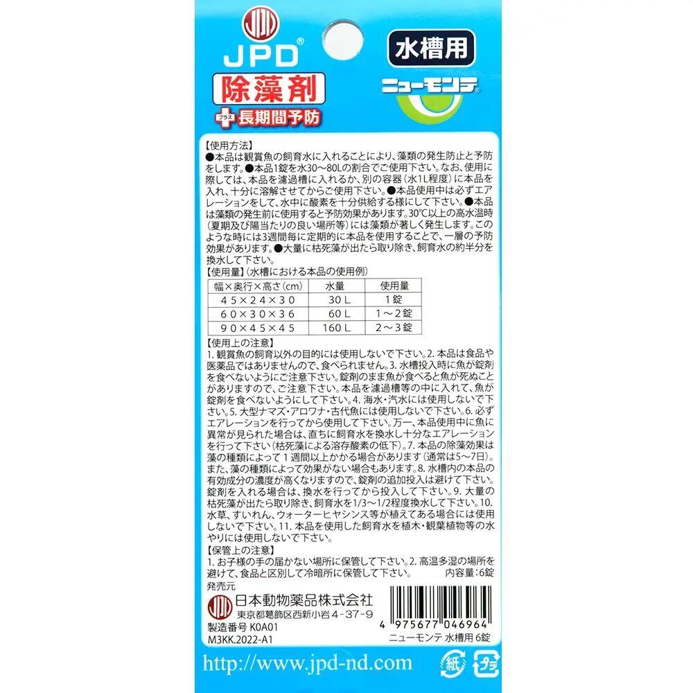 日本動物薬品 ニチドウ 水槽用除藻剤 ニューモンテ 淡水用 6錠入り