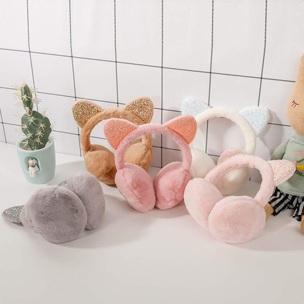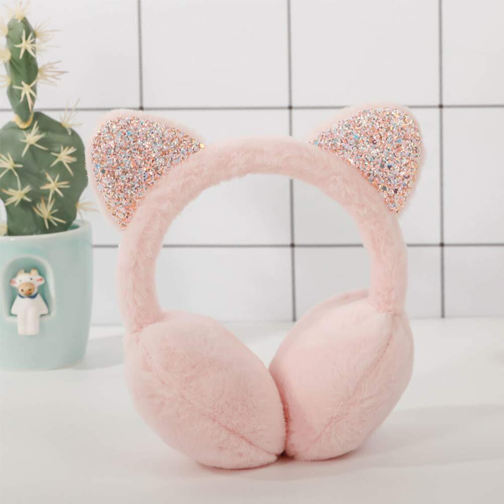 [YUEGUANG] キッズ 耳あて イヤーマフ 防寒 保温 子供用 女の子 猫の耳 可愛い ふわふわ アウトドア 携帯便利 通学 通園 ファッション (ライトピンク)