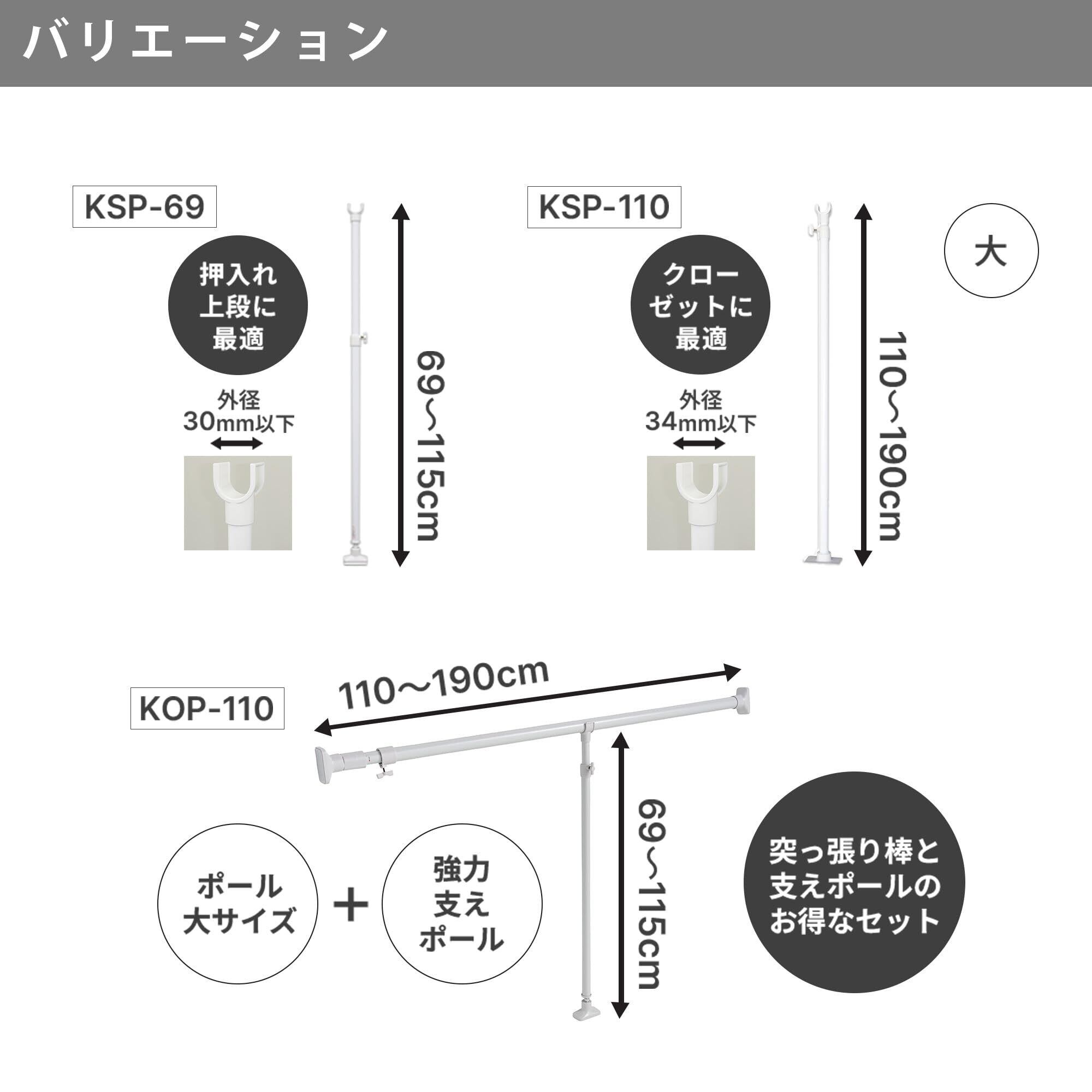 平安伸銅工業 HEIAN SHINDO 押入れ用強力支え棒 ホワイト 取付高さ69~115cm 外径30mm以下対応 KSP-69