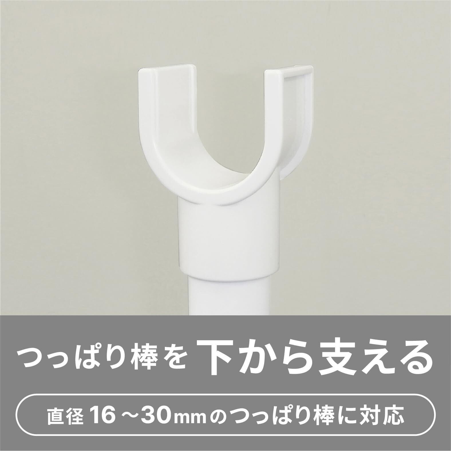 この支え棒は、取付高さが69cmから115cmまで調整可能で、外径30mm以下のアイテムにしっかり対応します。シンプルでスタイリッシュなホワイトカラーは、押入れやクローゼットのインテリアにも馴染みやすく、使わないときでも見た目を損ないません。