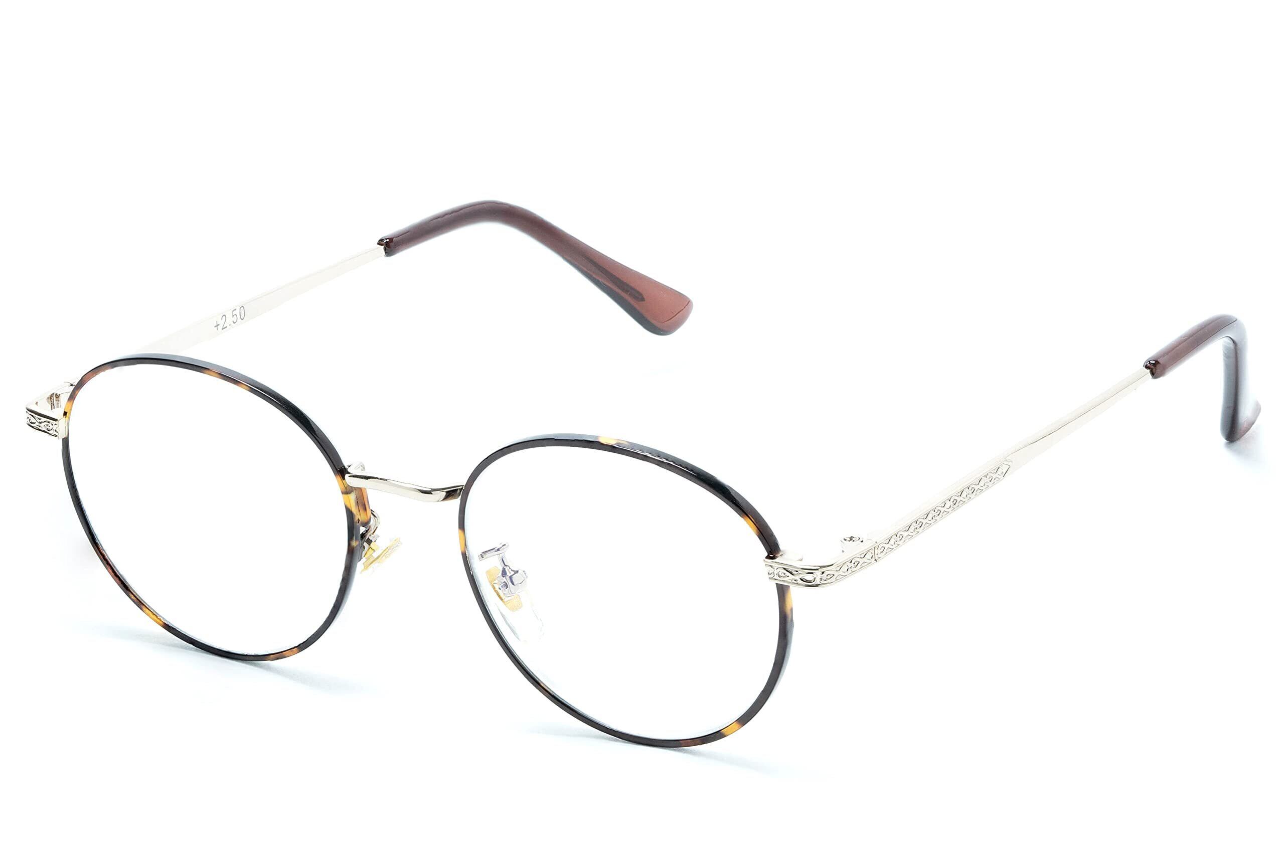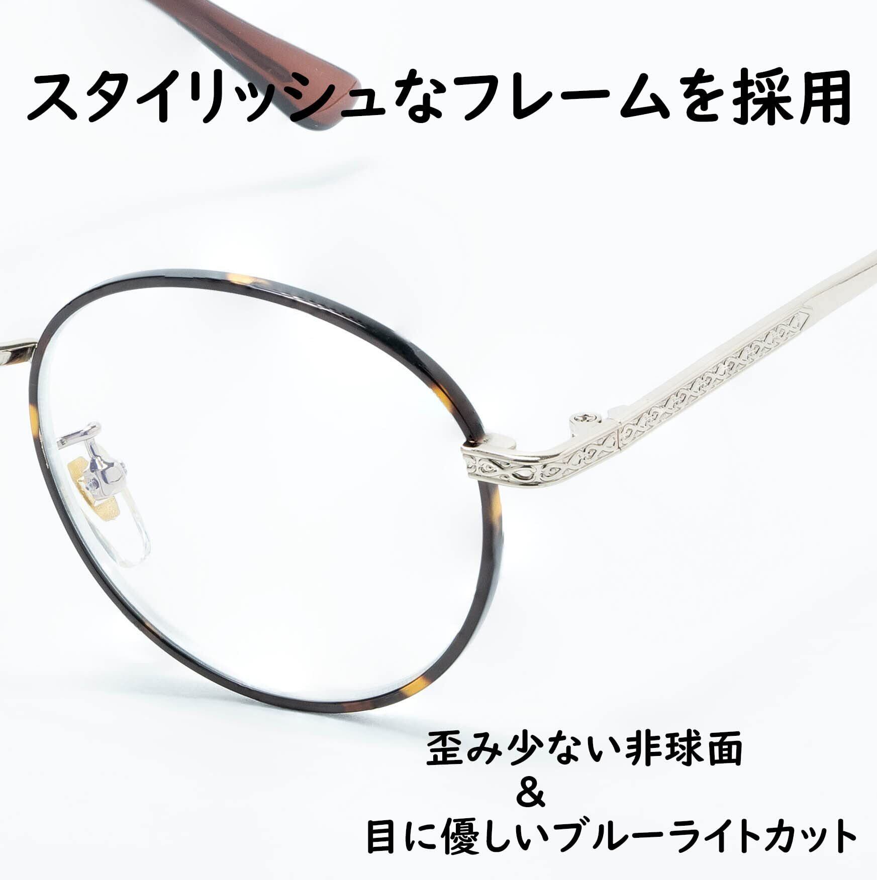 老眼鏡 レディース おしゃれ フレーム ライブラリースタイル 非球面レンズ ブルーライトカット 軽量 丸メガネ ラウンド メタル 度数 +1.50 497115