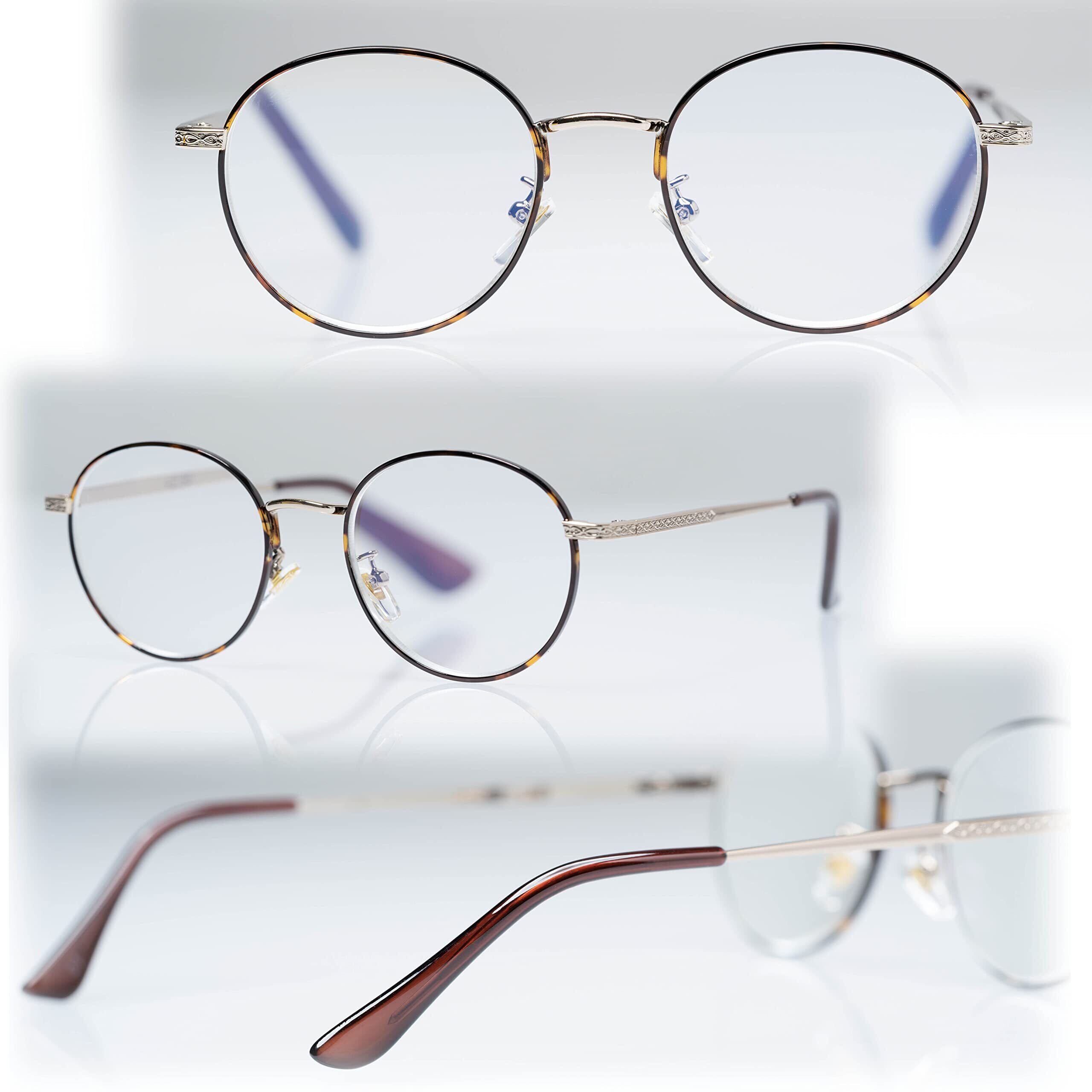 べっ甲調のリム転写とライトゴールドのコンビがキレイです。 ブルーライトカットレンズを使用しています。 おしゃれな専用ソフトケース付きです。