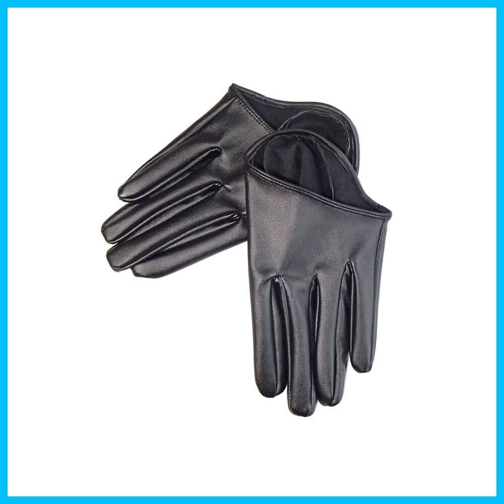 ハーフグローブ ショート 手袋 レディース フェイクレザーグローブ (ブラック)