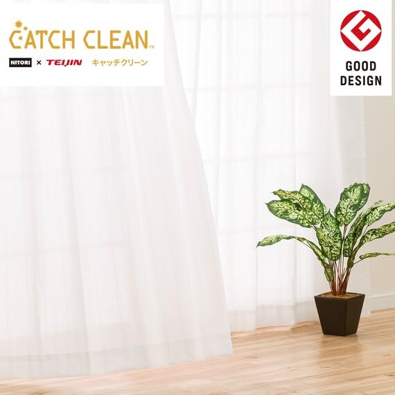 ニトリ(NITORI) 遮熱で省エネもできるカーテン 遮熱・ミラー・抗カビ・花粉キャッチレースカーテン キャッチCアンモル アイボリー 幅100×丈176cm×2枚 7334936