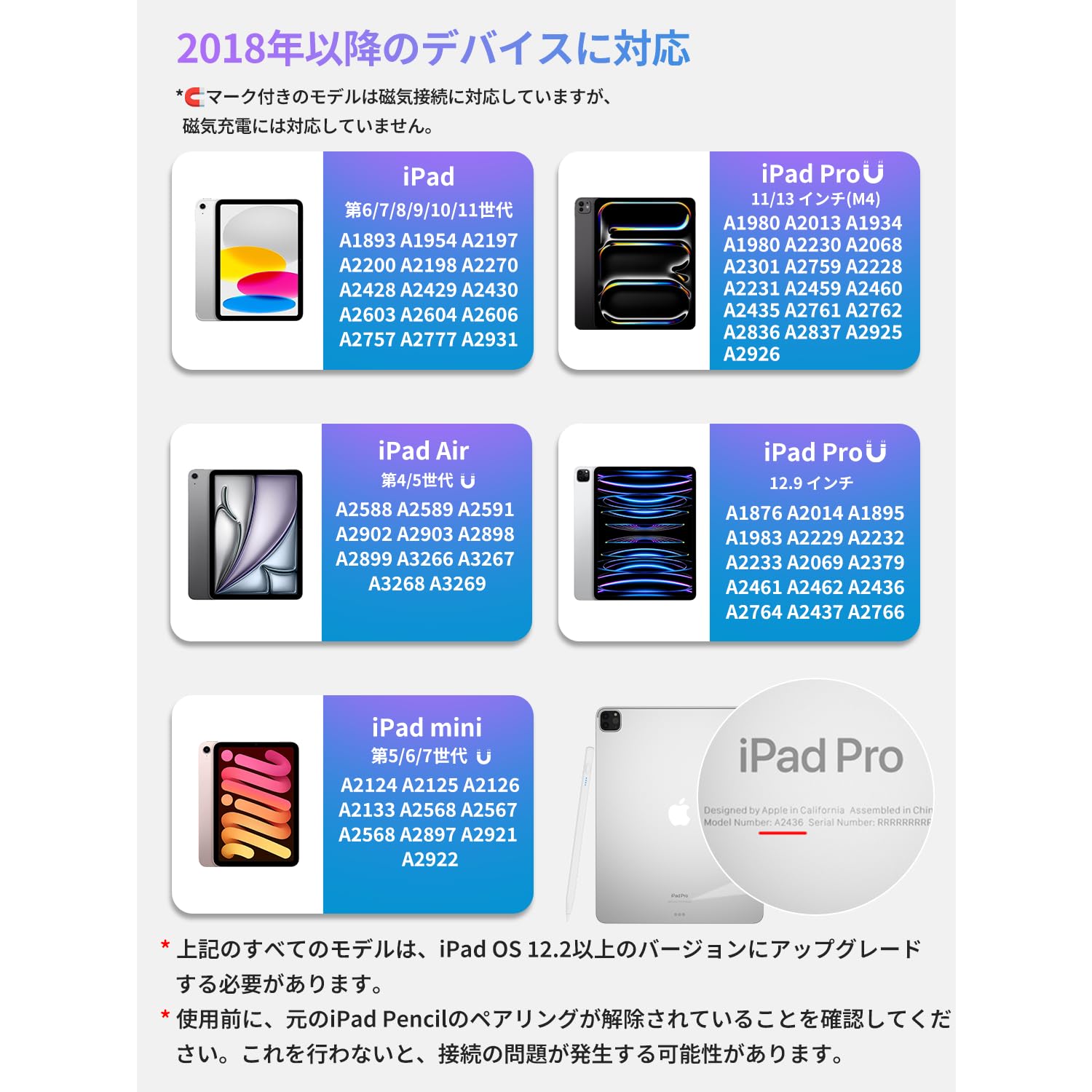 【2018年以降iPad専用スタイラスペン】 GLUBEE iPad ペンシルは2018年以降のiPadモデルに完全対応:iPad第6/7/8/9/10/11世代、iPad Air第3~7世代、iPad Pro 11型全世代、iPad Pro 12.9型第3/4/5/6世代、iPad mini第5/6世代、iPad Pro 13インチ/11インチ型(M4)、iPad Air 13インチ/11インチ型(M2)など。iPad 第10世代 ペンとしても最適(※必ず対応機種を確認の上ご購入ください)。