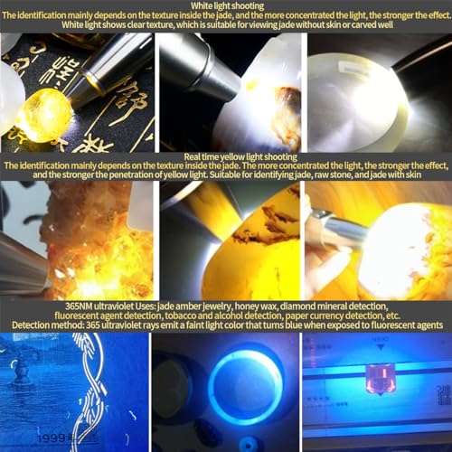 YZYOE LED三光源翡翠識別懐中電灯、365 nm紫外線検出ランプ、ジュエリー、宝石、アンティーク蜜蝋紙幣の検証。