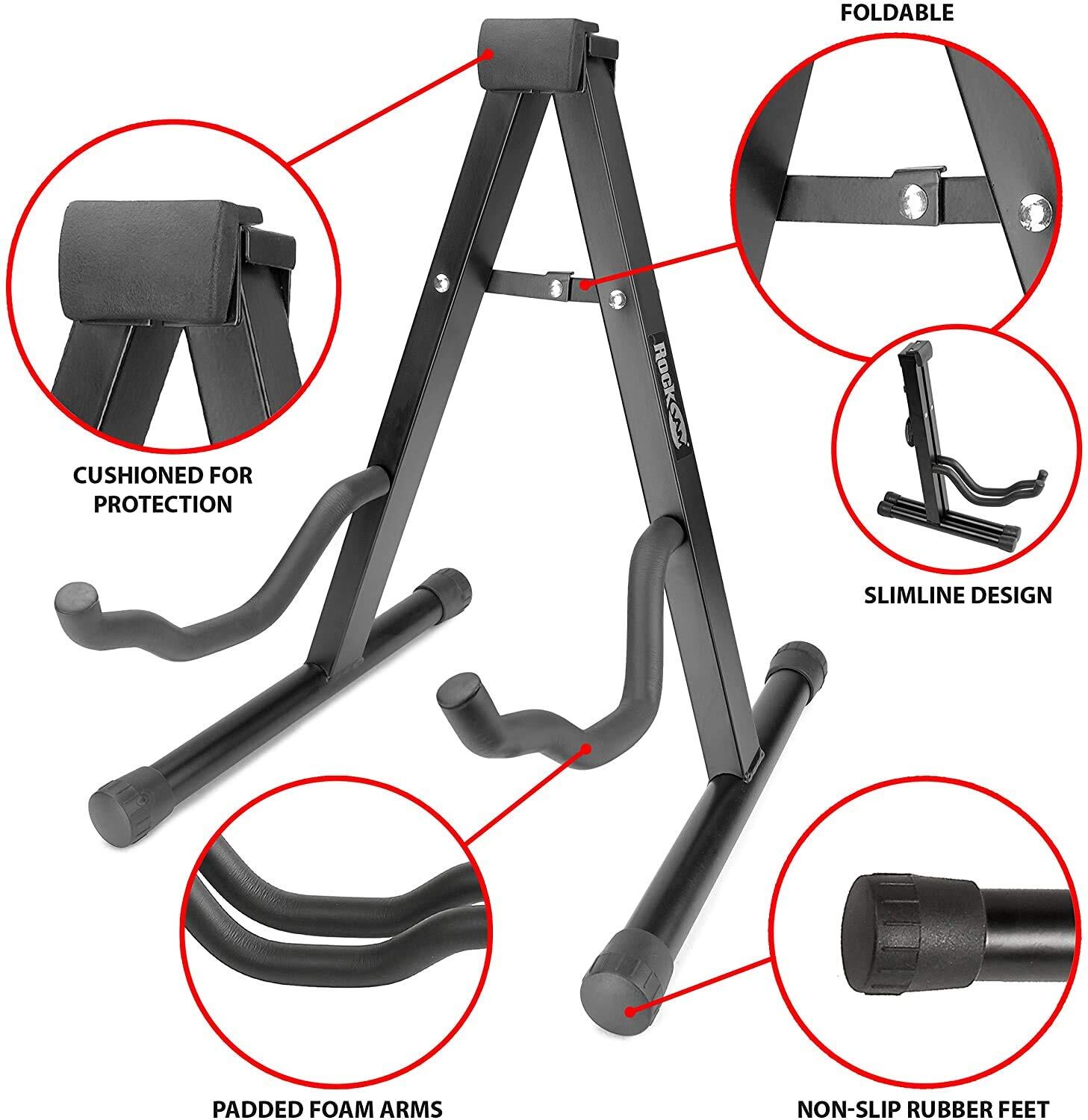 アコースティック、クラシック、エレクトリックギター用RockJam折りたたみスタンド RJGS01