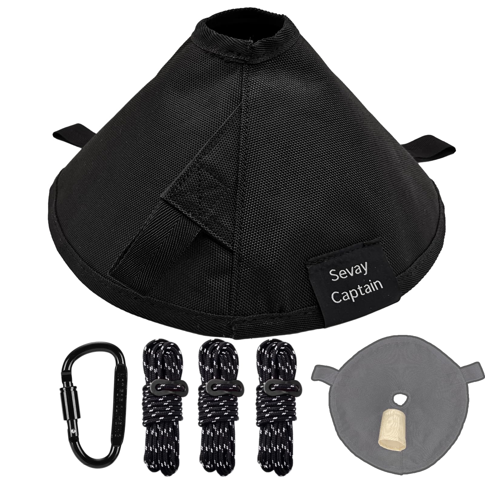 SevayCaptain タープ連結アダプター ワンポールテント タープ 連結 一人での取り付け可能 構造安定 軽量 難燃 撥水性 防カビ性 耐寒 防風 耐引裂 強化D型カラビナと反射風縄が付属 黒色 (ブラック)