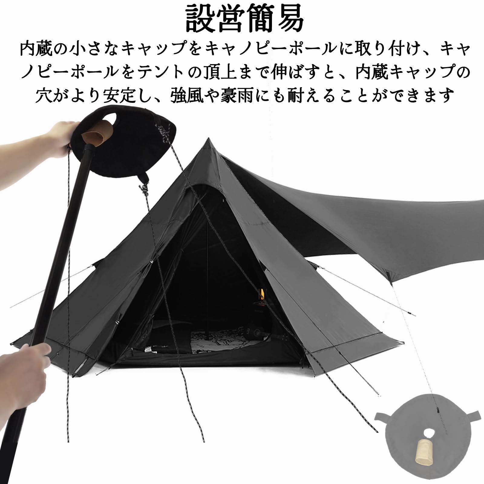 4.【ワンポールテントに最適/トンガリハット アダプター】Circus TC、ワンポールテントM/L、小川張り ワンポールテント、 Renconテントなど、多くののテントに対応します。ワンポールテント240シリーズ、ワンポールテント400シリーズ、ワンポールテント500シリーズなど、さまざまなテントに対応します。