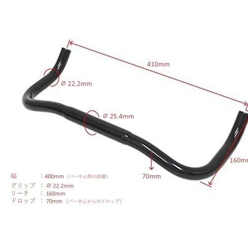 ハンドルサイズ(約):ハンドル幅 400㎜(芯-芯)、バーサイズ(直径) 22.2mm、クランプ径 25.4mm