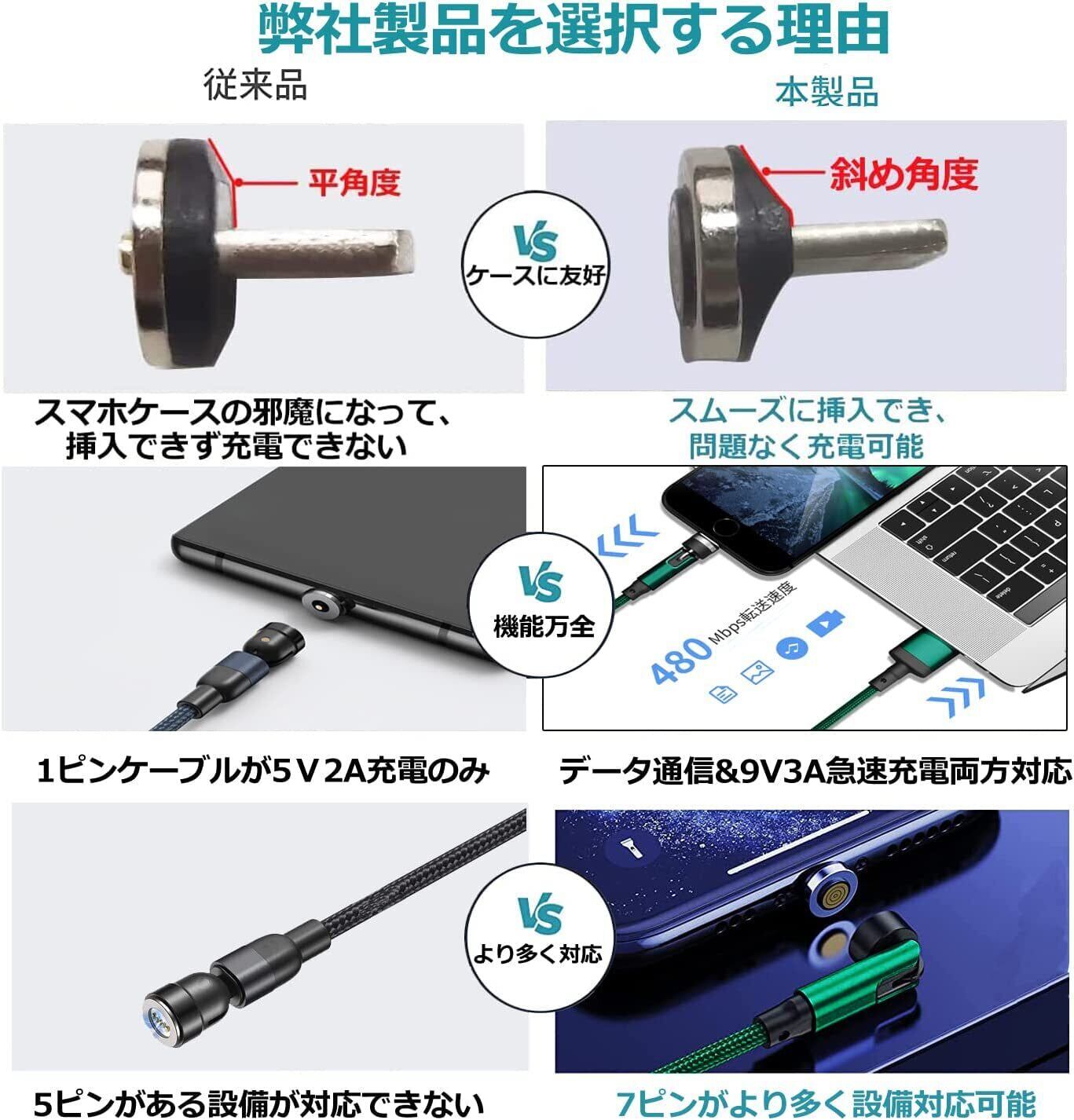 【7ピンでデーター転送&3A急速充電】最新の7ピンマグネット充電ケーブルで、様々な設備が対応可能。USB-Cの場合、3A急速充電も対応できます。480Mbpsデーター転送も対応可能。