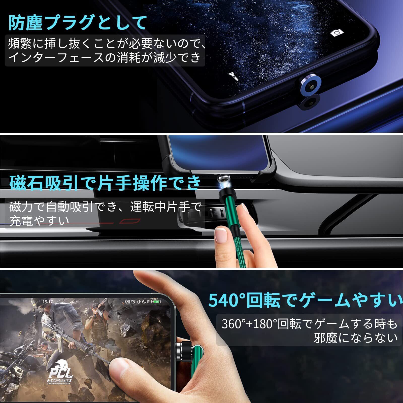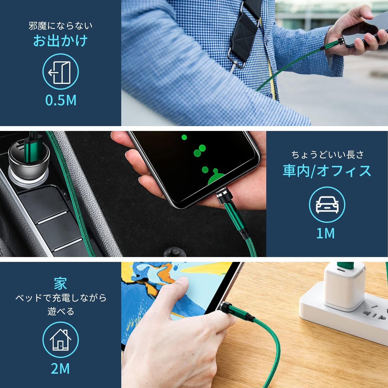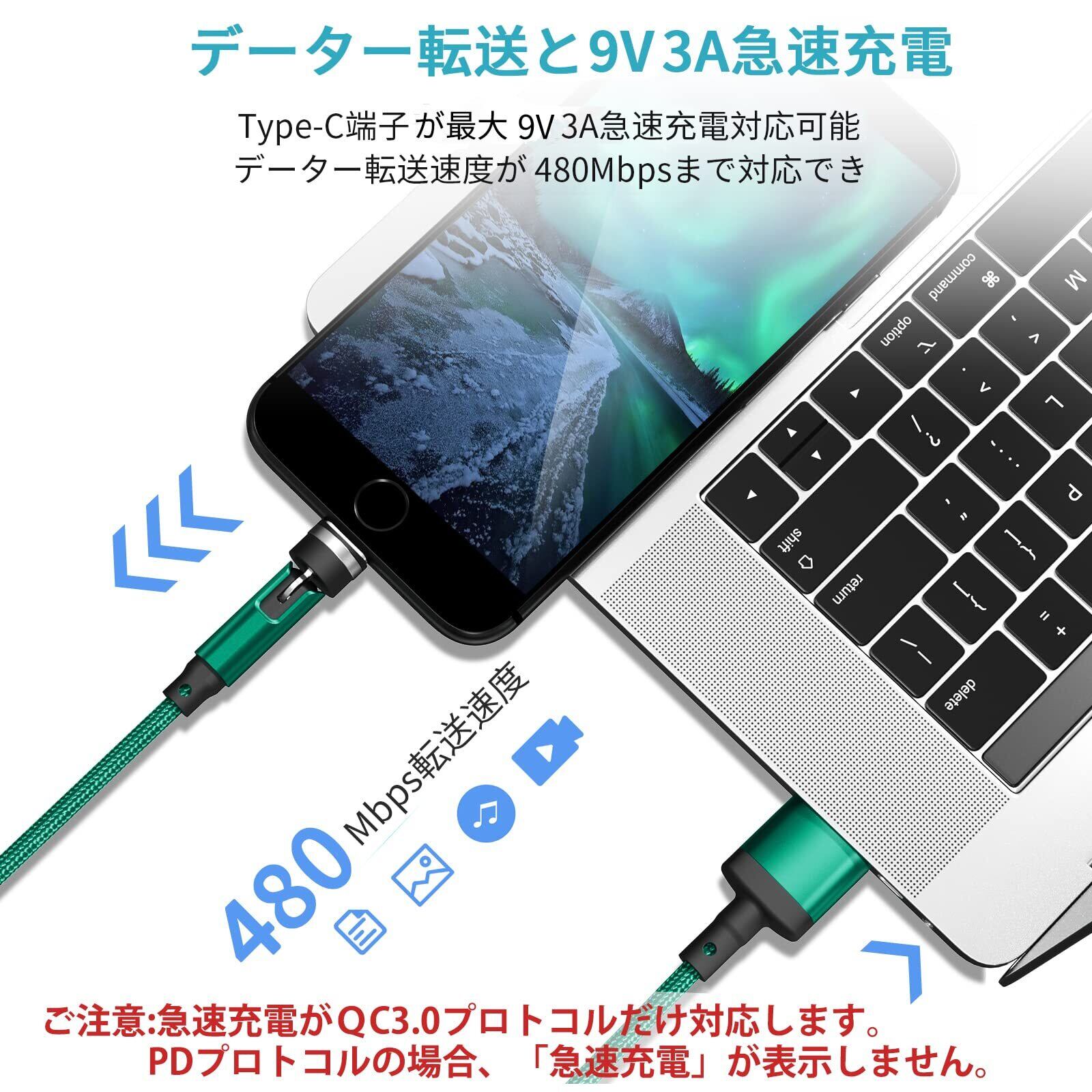 マグネット-充電ケーブル 7ピン 3A急速充電+データ通信 For Phone Type-C-充電ケーブル 3in1 充電コード 【9個端子+ 4本セット】 540度回転 0.5M+1M+1M+2M 磁石 Ligting USB-B ケ ーブル For Pad Air/Pad Pro/For Phone 13 / 12 / 11 / SE/Pixel 片手操作 ダー クグリーン HYDOOD