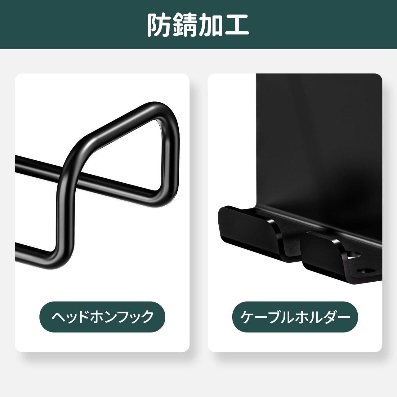 省スペースデザイン: スリムでコンパクトなデザインにより、スペースを有効に活用できます。ヘッドホンを吊り下げることで、デスク周りの整理整頓がしやすくなります。