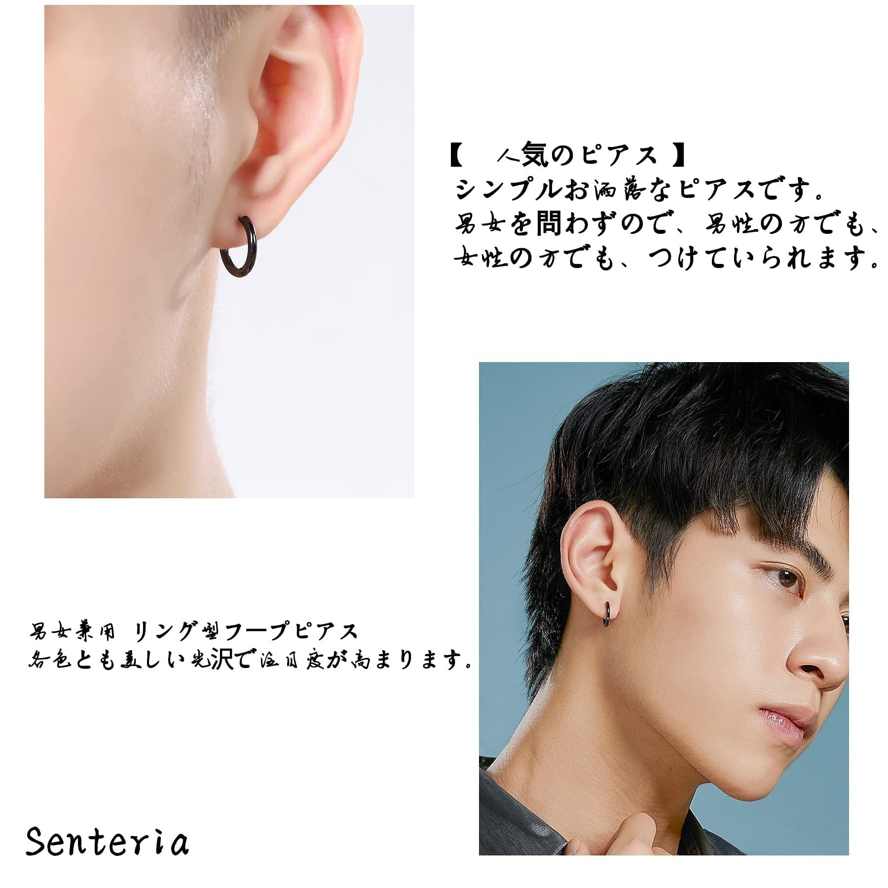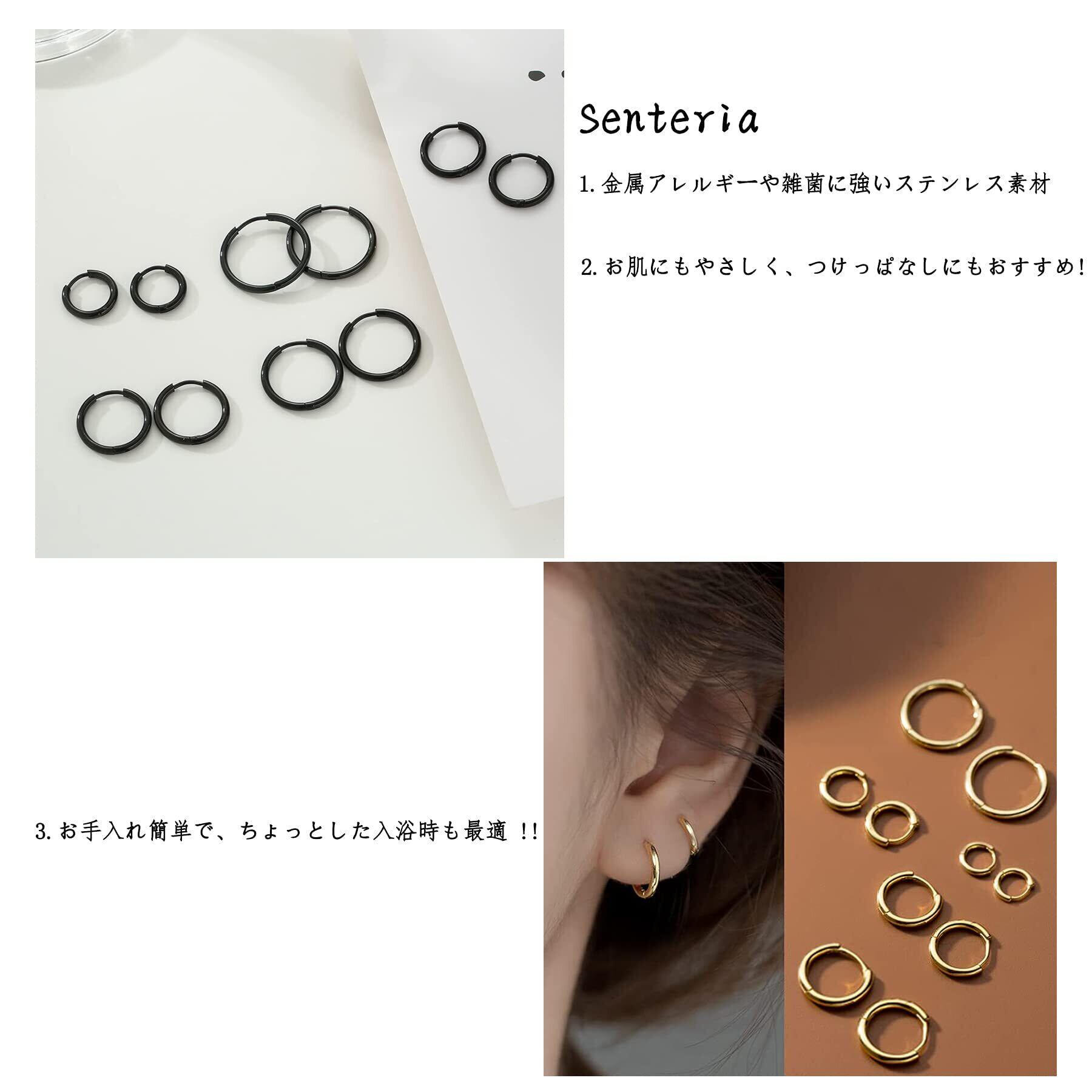 Senteria フープピアス リング ゴールド、ブラック メンズ レディース 両耳用 サージカルステンレス イヤリング セット 金属アレルギー対応 シンプル 人気 6ペア(サイズ8mm-12mm、幅2mm)