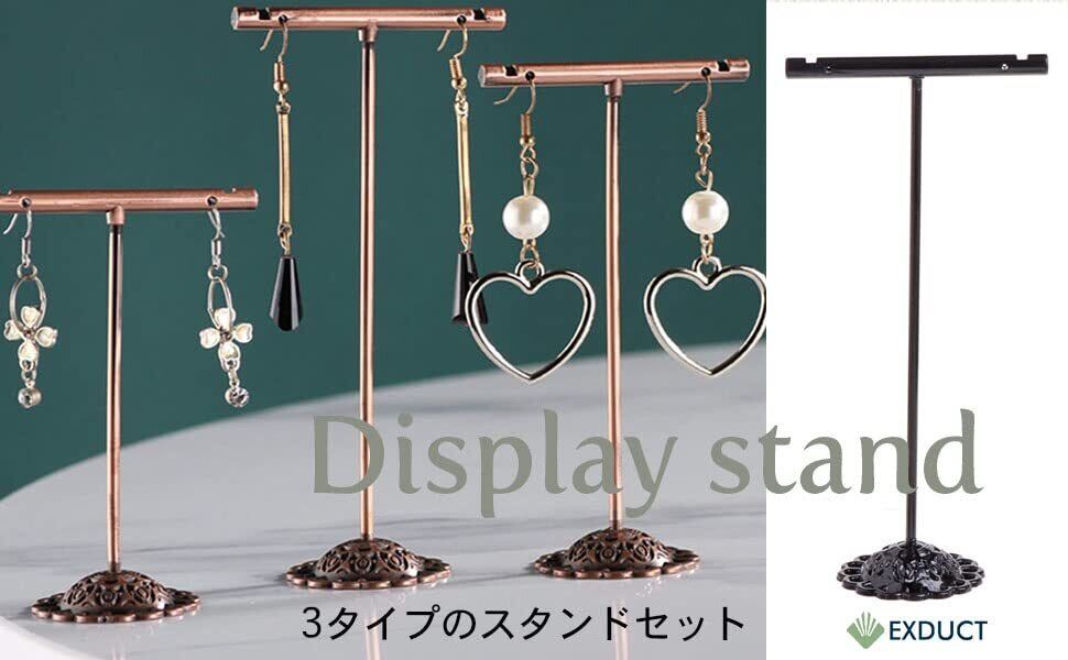 イヤリングやピアスを美しく保管できるディスプレイスタンド3種セットです。