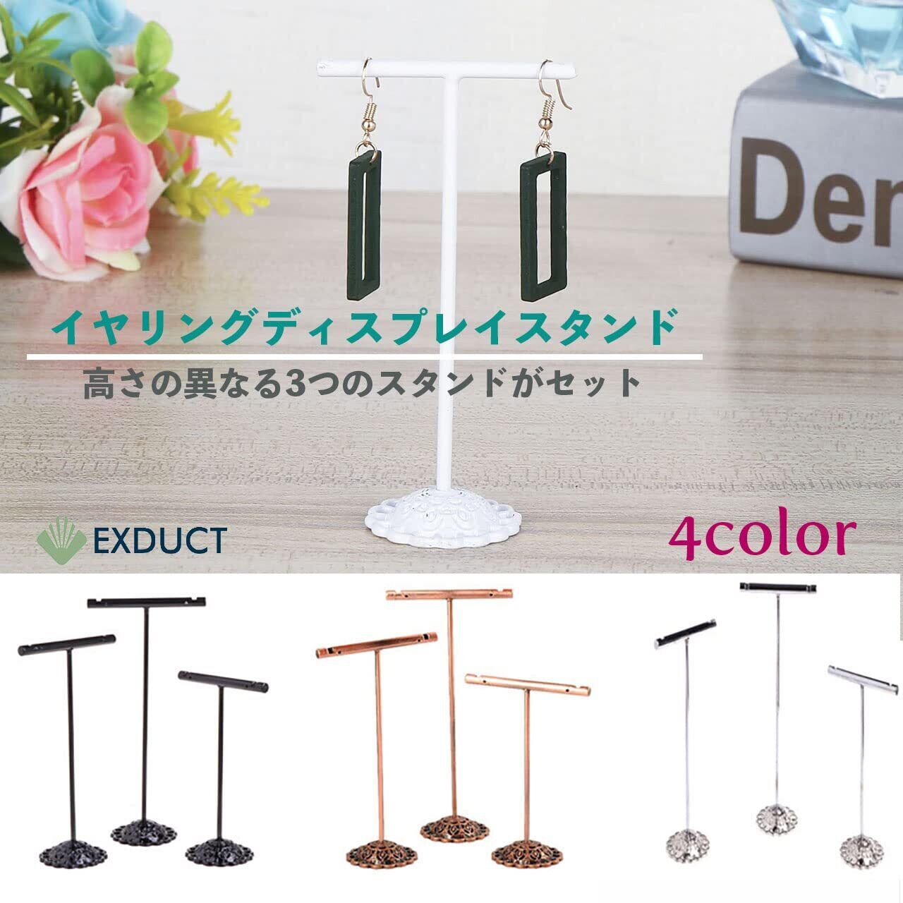 EXDUCT ピアススタンド T字 3個 セット ピアスホルダー おしゃれ ディスプレイスタンド アクセサリースタンド 腕時計 スタンド (銀)