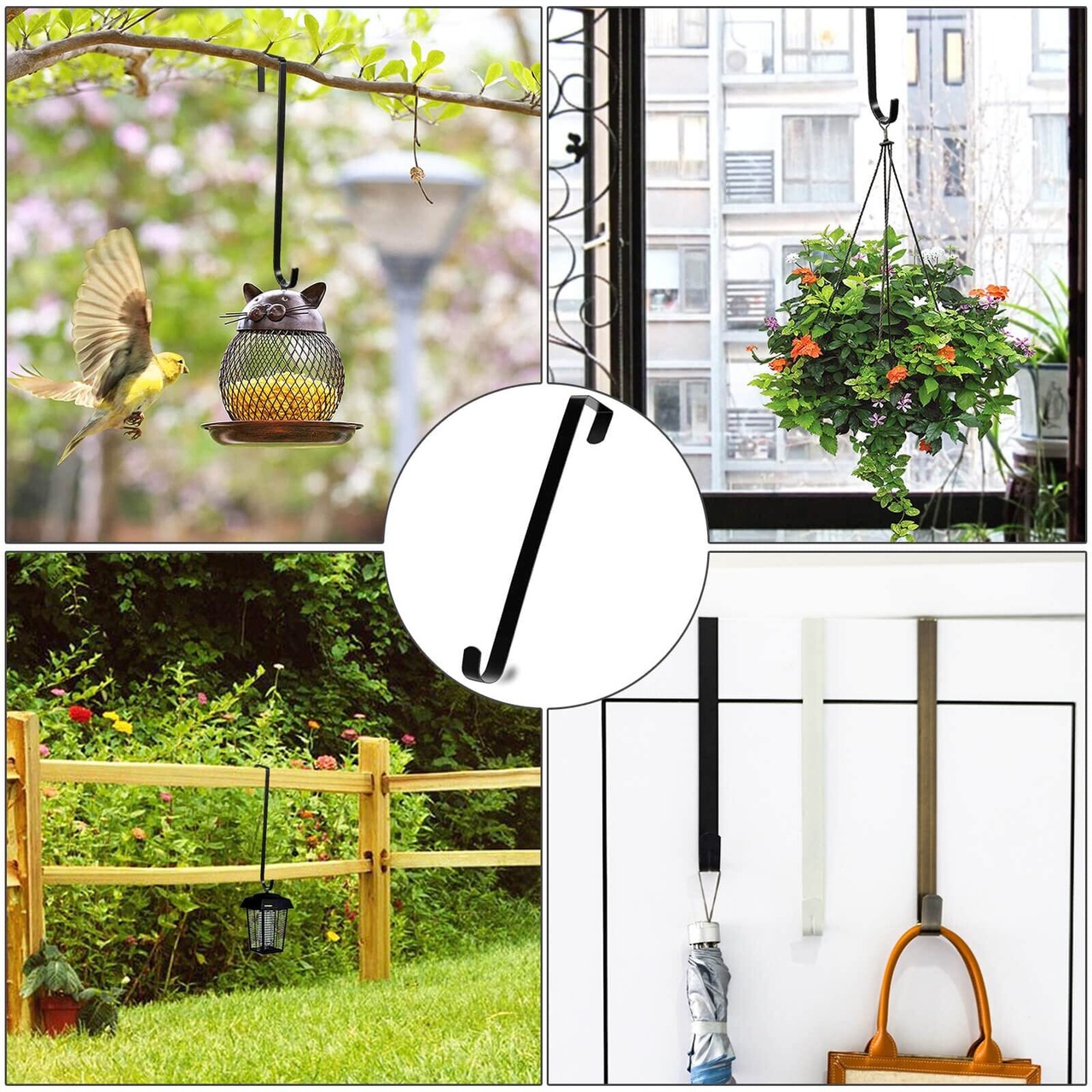クリスマスリースフック 花輪ハンガー 玄関用 S字フック 黒 お正月 飾り リース ドアフック ドア吊り 花輪フック ドア掛け用 金属フック 取り付け簡単 工具不要 省スペース 帽子掛け 服 帽子 ネクタイタオル 傘 バッグ 小物等を掛ける ブラック