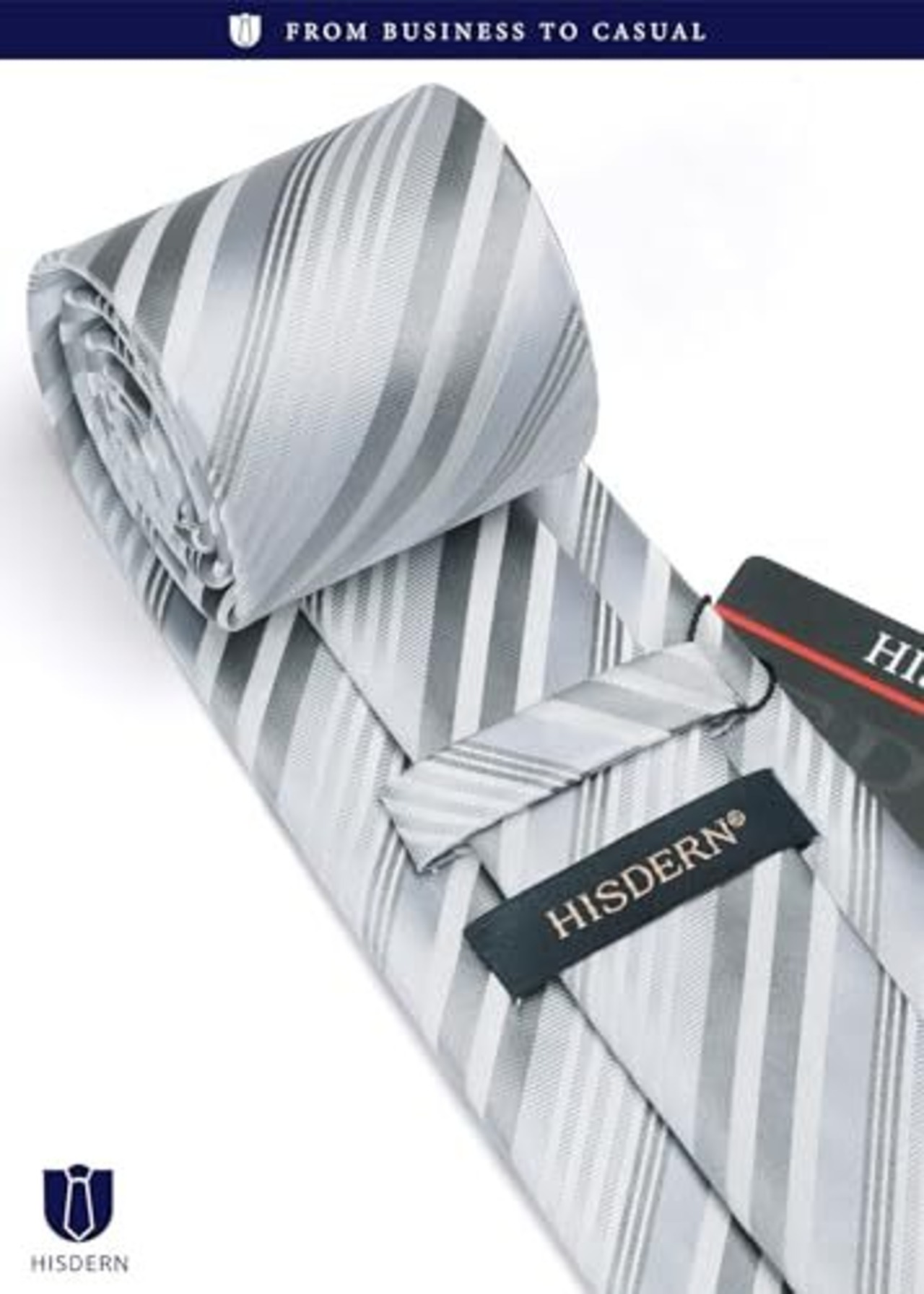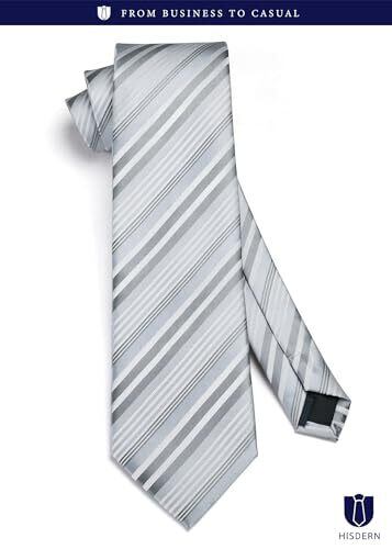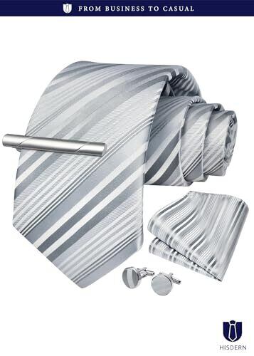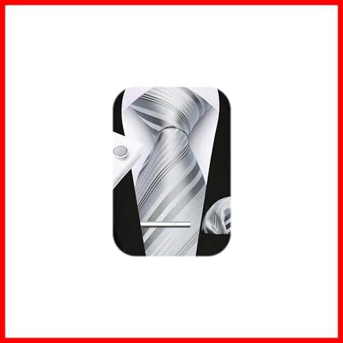 [HISDERN] 結婚式 シルバー ネクタイ メンズ ネクタイ チーフ タイピン カフスボタン 4点セット ストライプ柄 婚礼用 就活 入学式 卒業式 パーティーA4-01