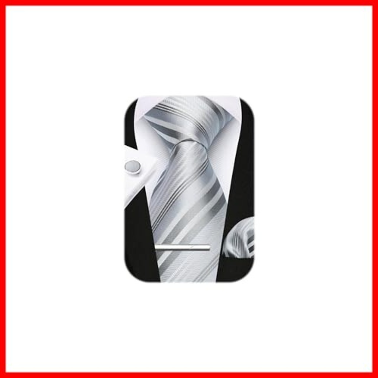 【4点セット】ネクタイ1本 + ポケットチーフ1本 + ネクタイピン1本+ カフスボタン1本 商品サイズ:ネクタイ 幅8.5cm / 長さ150cm | ポケットチーフ: 31cm*31cm | ネクタイピン:5.8cm × 0.6cm。