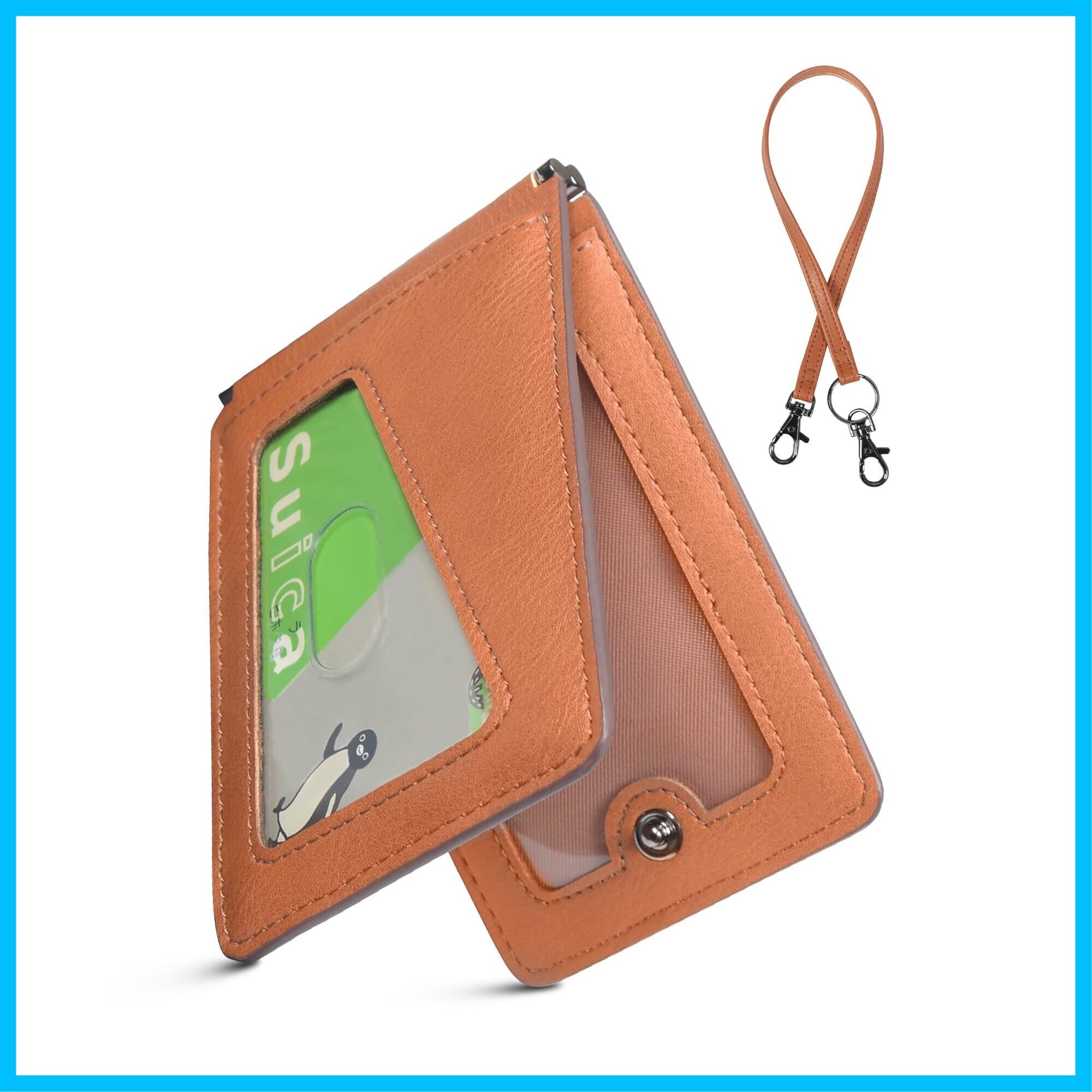 [LuoLuo] 定期入れ メンズ パスケース 5枚収納 本革Dカン 薄型 バタフライ ICカード2枚使用可能 ストラップ付き 通勤 通学 (ブラウン)