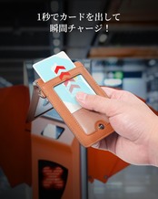 【スライダー式カードポケット&45cmストラップ】定期入れの中が見えるクリアポケットは中央部の穴が空いているので、カードを押し出しやすくなっています。ストラップの長さは45cm(フック含む)で、パスケースをバッグに付けて改札もスムーズにタッチできます。
