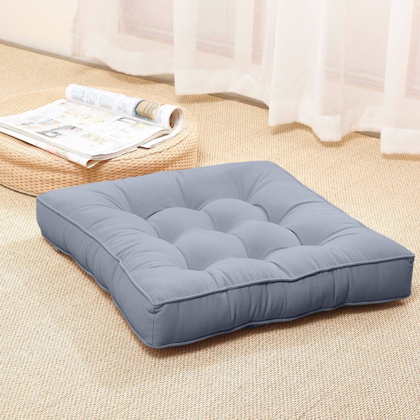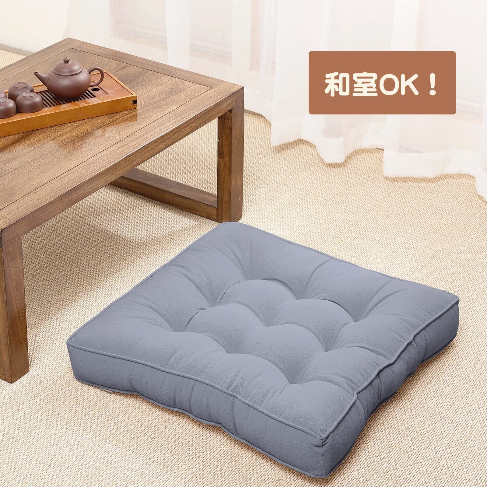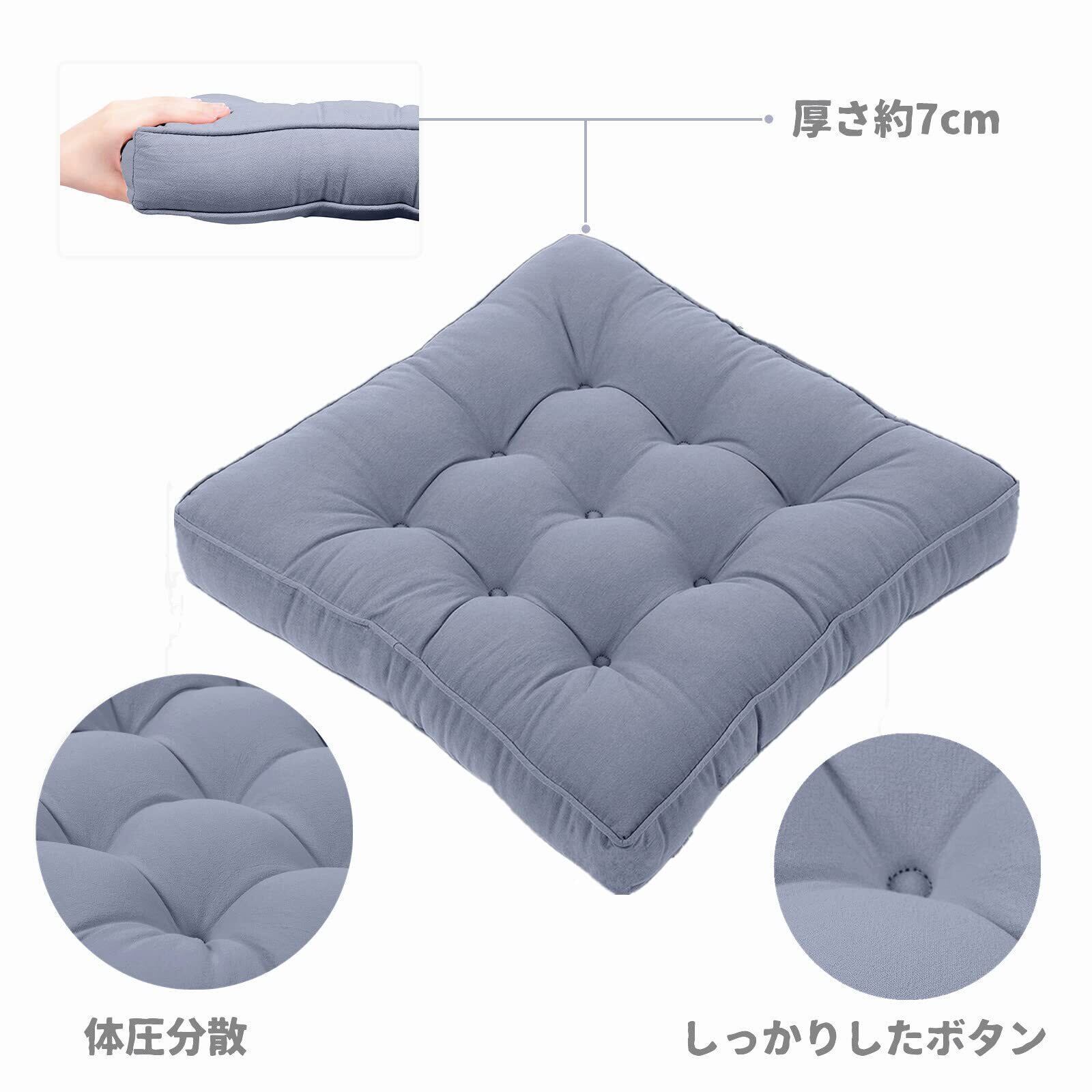 Baibu Home 座布団 クッション 綿100% やさしい座り心地 おしゃれ 厚さ7cm 50x50 座布団 大きい フロアクッション 床用 グレー