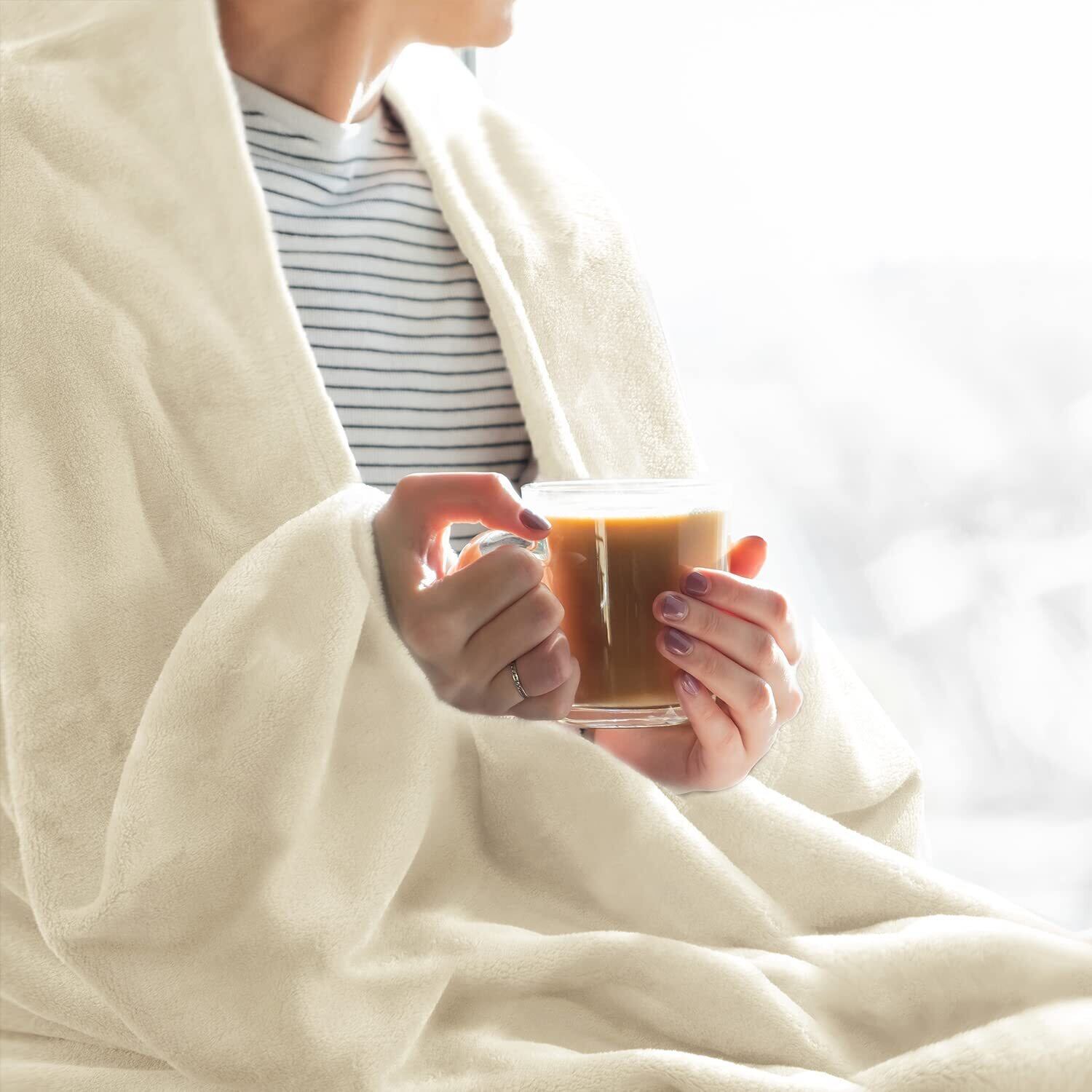 BEDELITE 毛布 ダブル 冬 厚手 ブランケット 冬用 膝掛け 柔らかく肌触 掛け毛布 フランネル ふわふわ モコモコ 冷え対策 洗える 静電防止 四季適用 おしゃれ 軽量(180x200,ぞうげしろ)