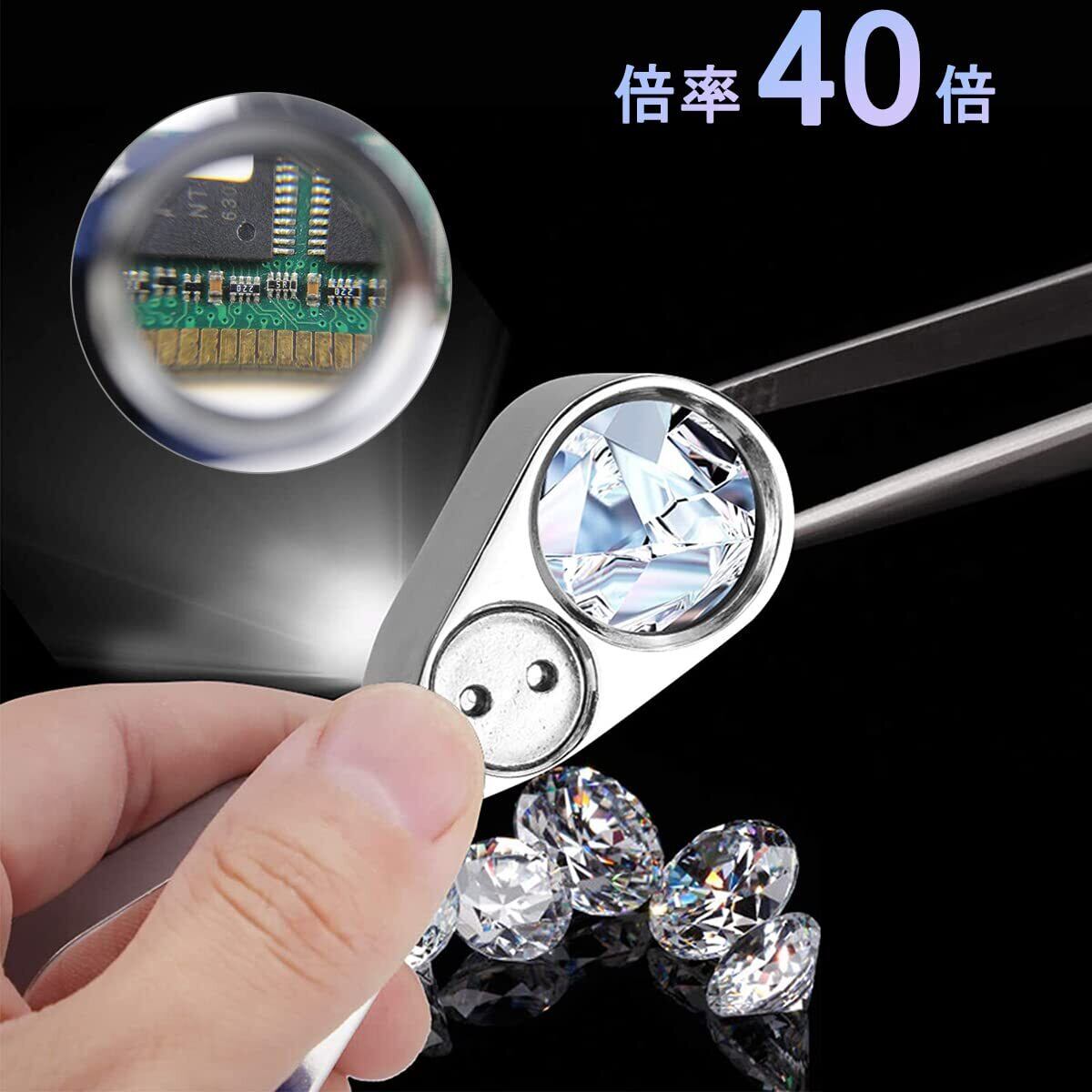 サムコス ジュエリールーペ【倍率40倍】宝石鑑定用 ミニ ルーペ LEDとUVライト付き 折り畳み 携帯ルーペ ジュエリールーペ