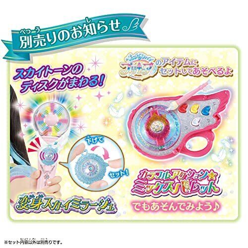 付属のスカイトーンを付け替えることで、キュアスカイ、キュアプリズムのそれぞれの変身遊び、2人の浄化技遊びが楽しめます。