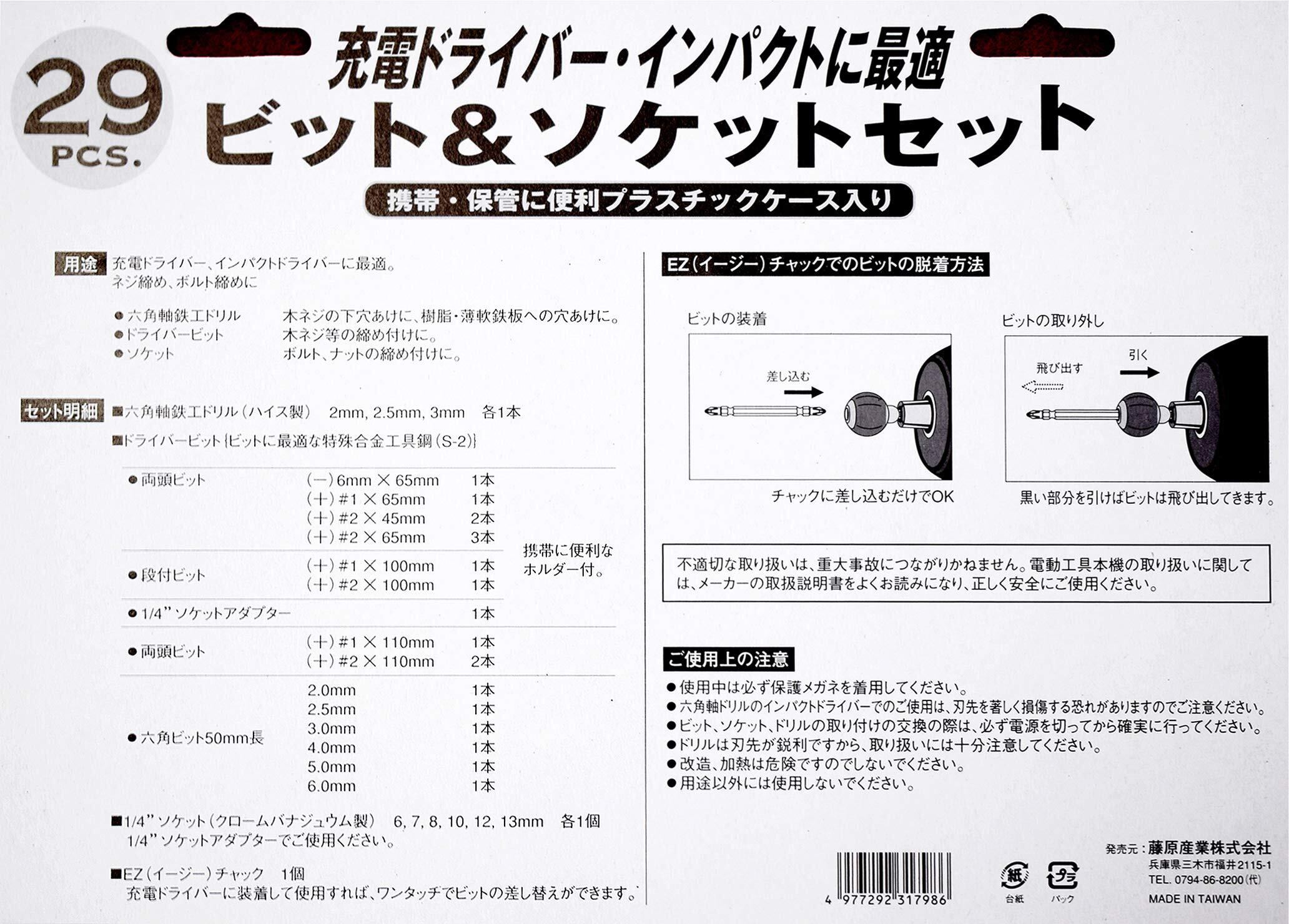 イーバリュー(E-Value) ビット&ソケットセット 充電ドライバー・インパクトドライバー用 29点組 BS-4