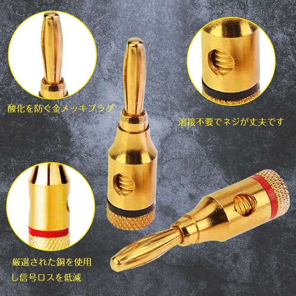 バナナプラグ オーディオプラグ スピーカーアダプター ハンダレス スピーカー側 底面接続 スピーカー 24K金メッキ ネジ 金属ハウジング 12個入り