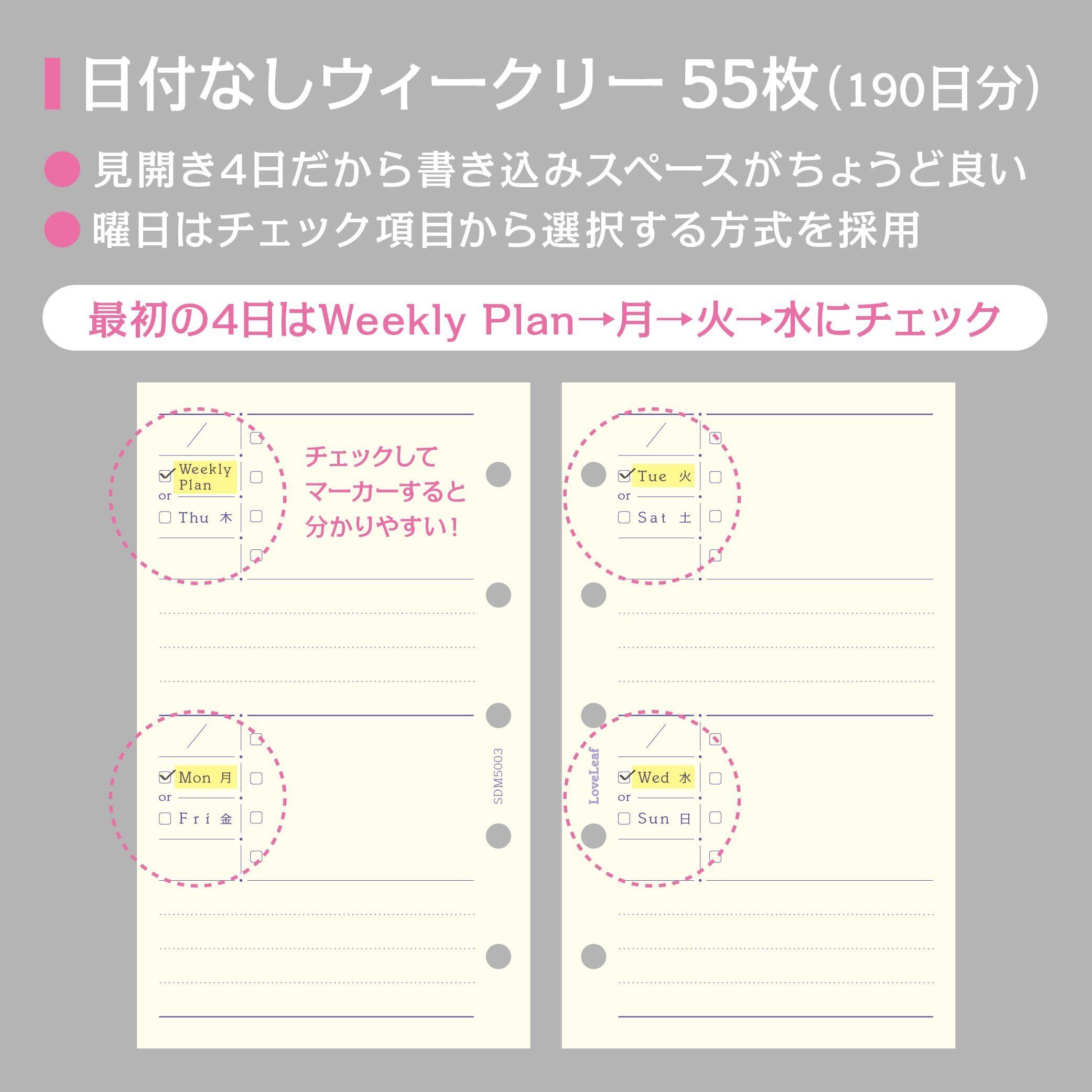 ラブリーフ システム手帳 リフィル マイクロ5 ウィークリー 日付なし 見開き4日 週間ブロック式 55枚(190日分) 5穴 SDM5003