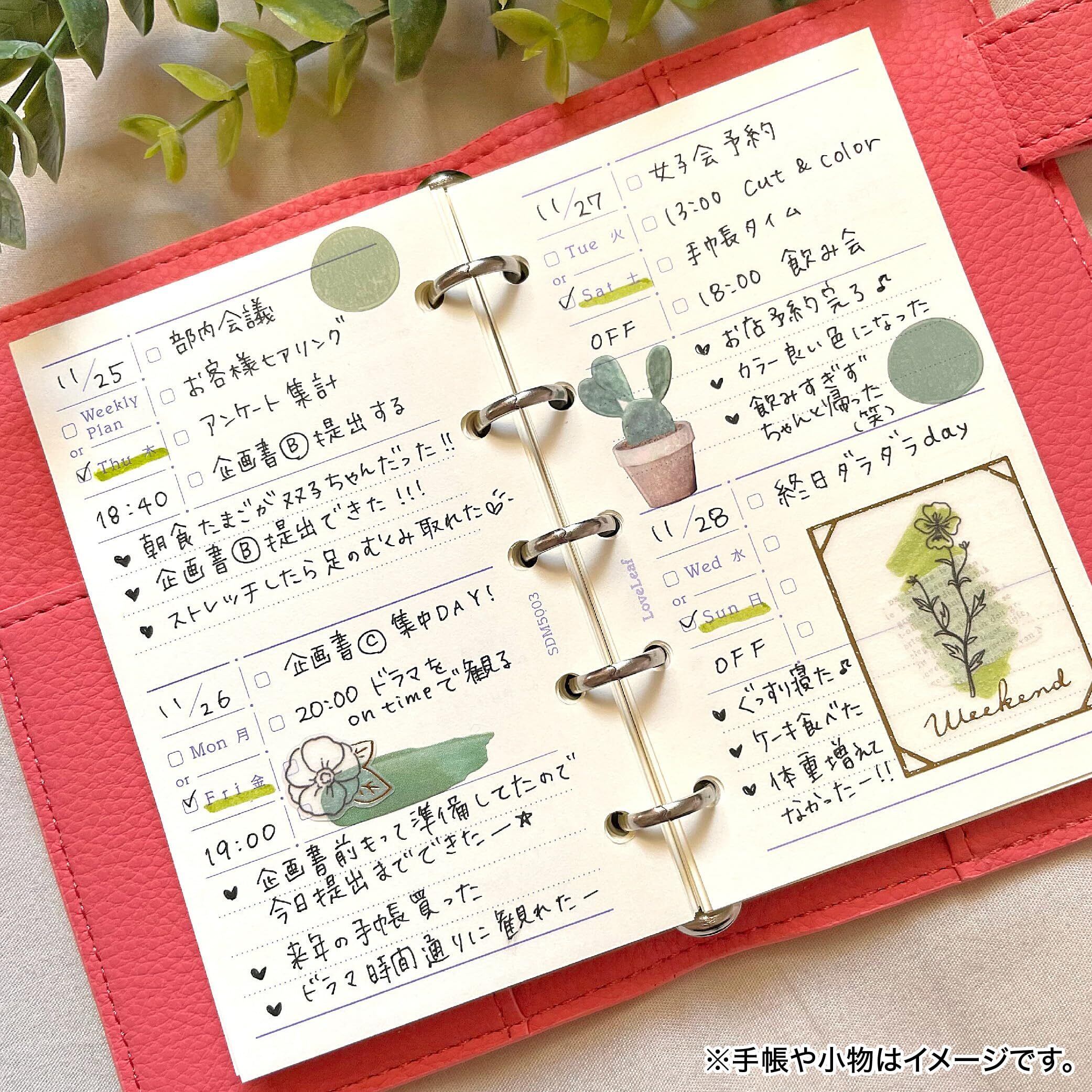 5穴のタイプに対応しているため、既存の手帳にスムーズに追加したり交換したりできます。あなたの使いやすさを考慮したデザインで、必要に応じて素早くカスタマイズできるのが魅力です。
