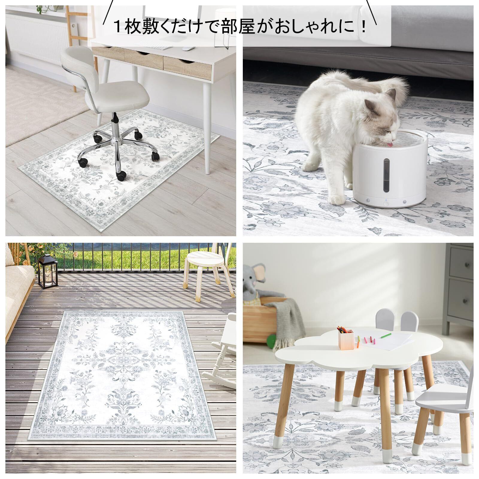【幅広く活躍】さらっと滑らかな肌触りとほどよい厚みで、春から冬にかけてオールシーズンにお使いできます。床を 保護だけでなく、インテリアとしてもぴったりです。ベッドサイド、リビングルーム、ベランダ、やダイニングのテーブルの 下など幅広く活躍します