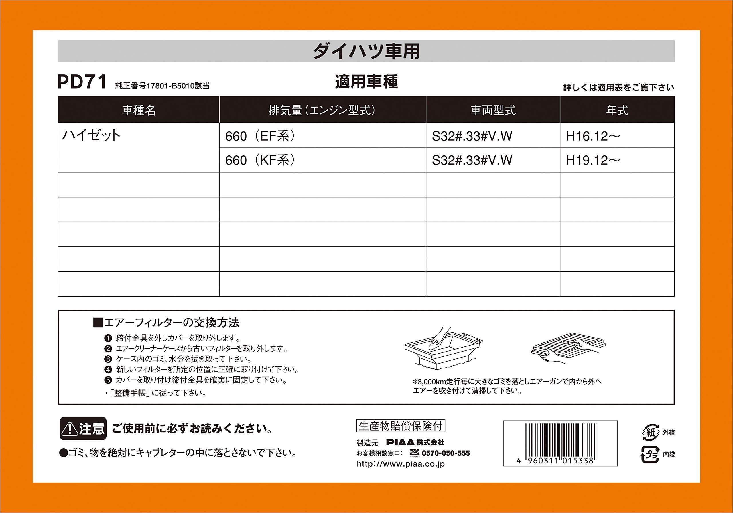 PIAA(ピア) 車用 エアフィルター AIR FILTER 1個入 [ダイハツ車用] ハイゼット_他 PD71